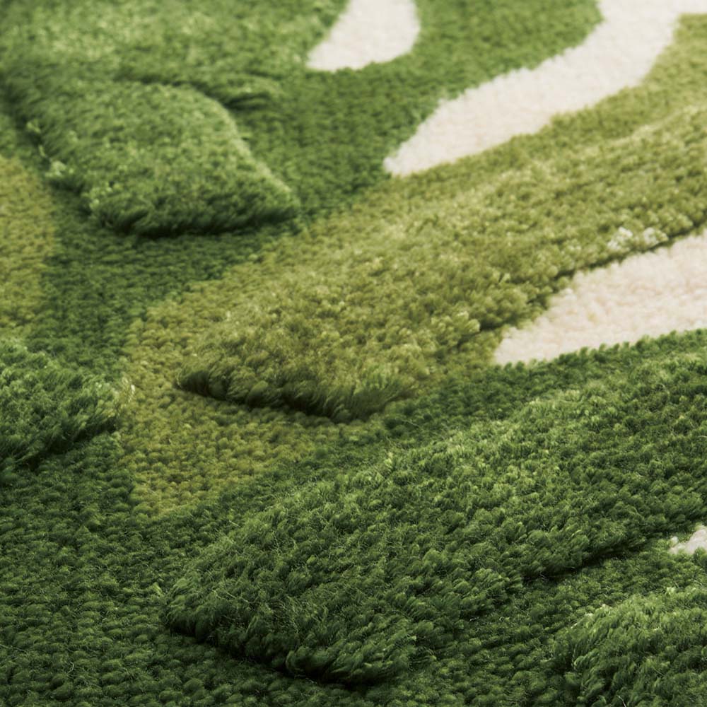 【2つの技術のレイヤーから生まれる表情豊かなインテリアマット】メーカー自社マット工場の手法や素材を駆使し一枚一枚丁寧につくられたベースと、日本の特殊なプリント技術を組み合わせることで一味違う表情を見せるマットです。ハンドメイドでつくりだす凹凸感と、それに重なる繊細なプリントのお陰影がモダンさと重厚感を演出します。