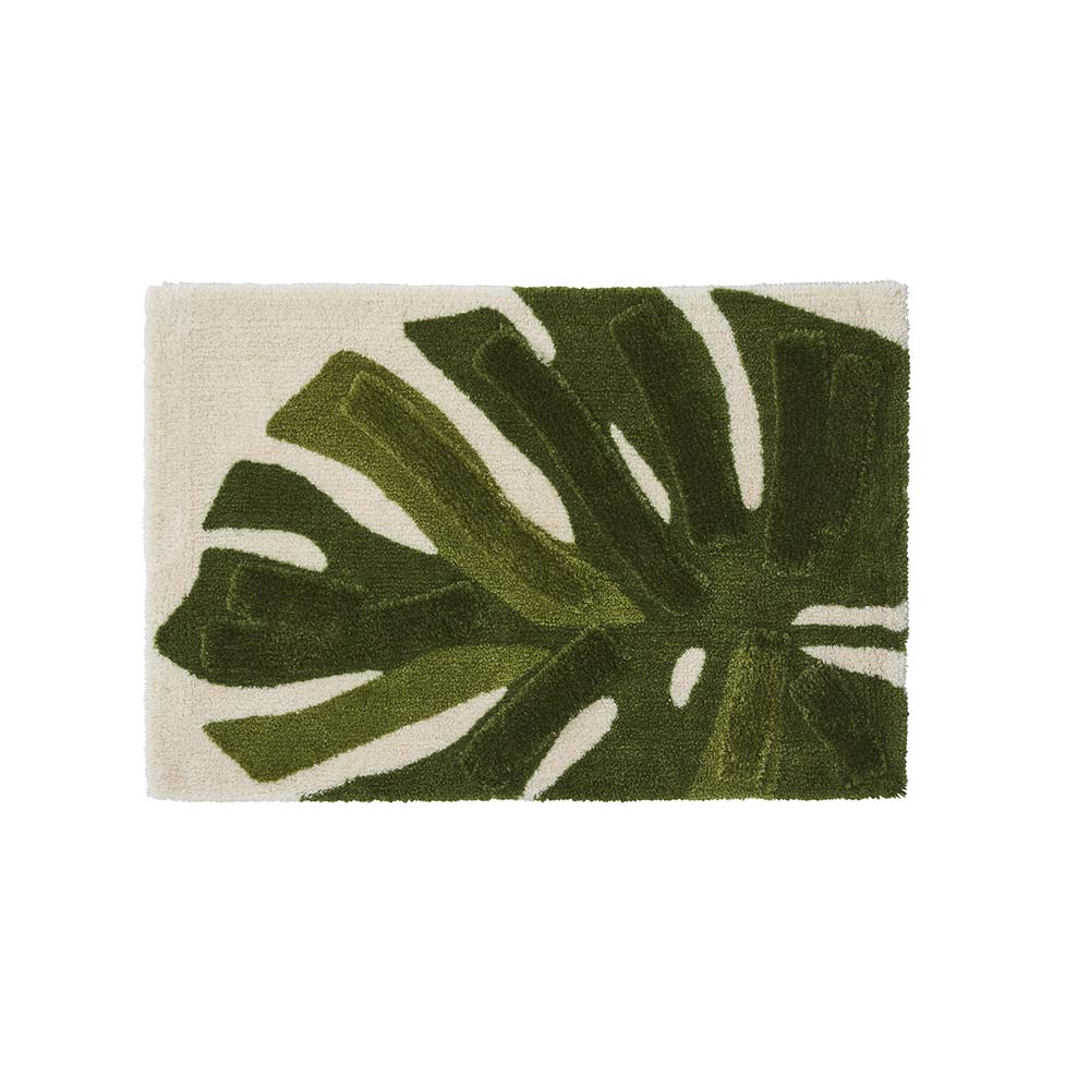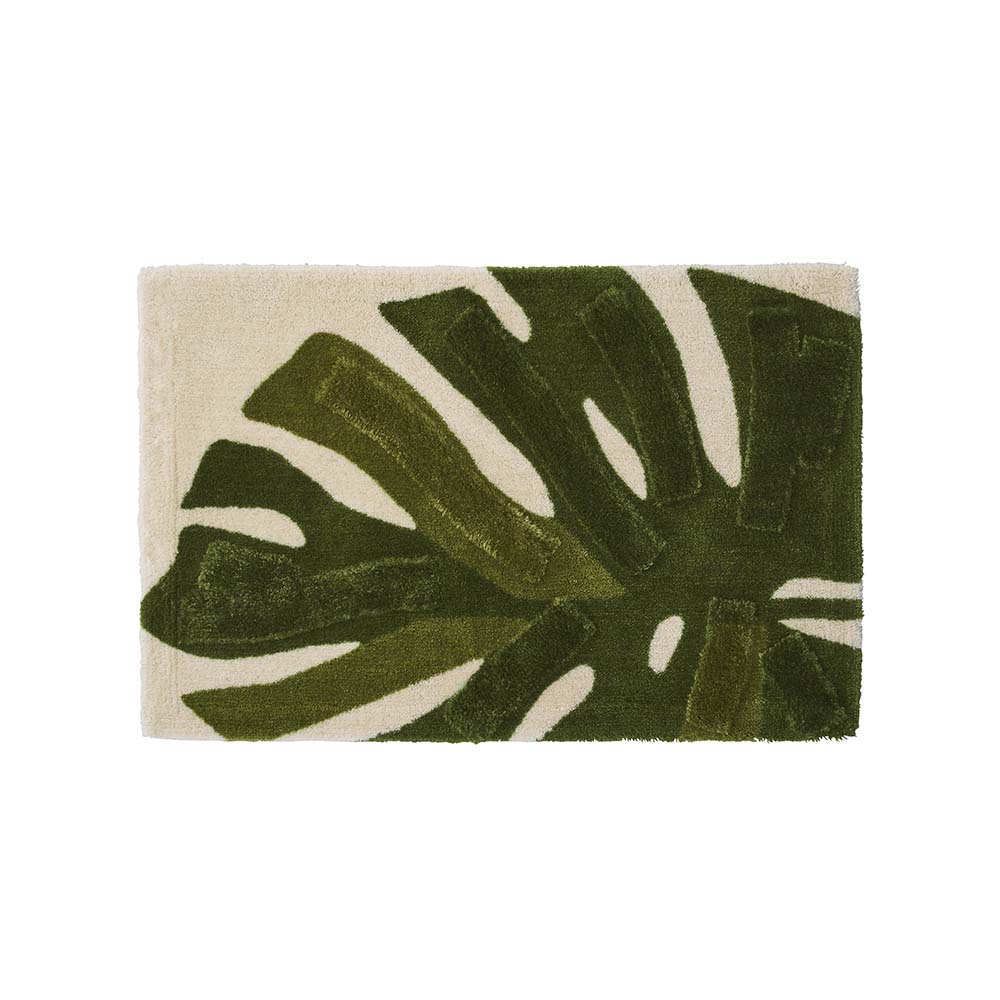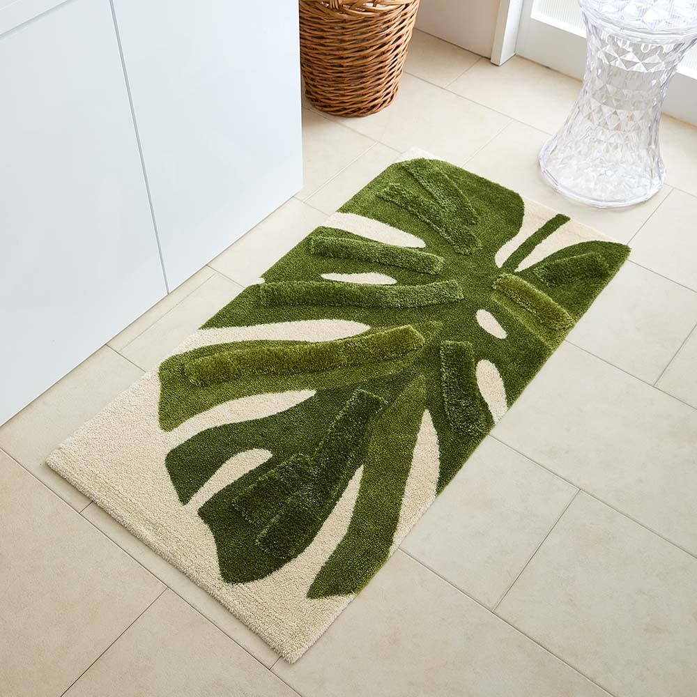 大胆にレイアウトした大きなモンステラと、その葉の流れを強調するような凹凸デザインが新鮮。エントランスやパウダールーム、キッチンにも使える大判サイズもご用意しました。