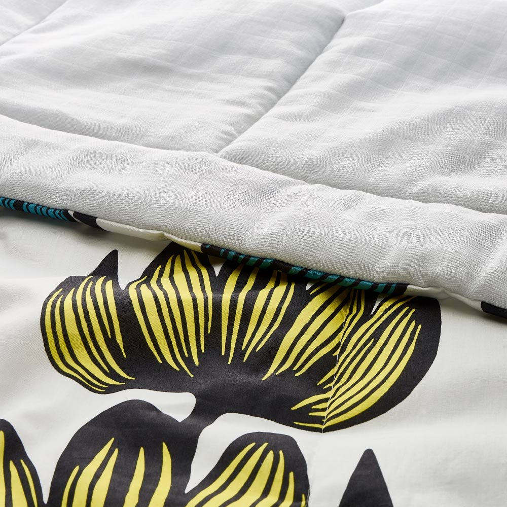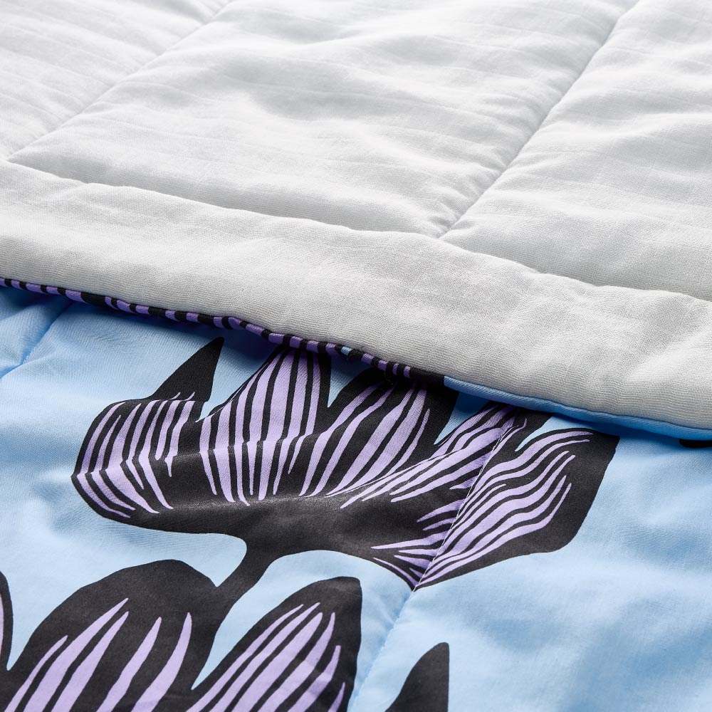 北欧らしい色彩豊かなデザインと品質の高さで、不動の人気を誇るフィンレイソン。肌面にやわらかなガーゼ生地を使用した中わた入りケットは、やさしい肌ざわりとちょうどいい暖かさで、季節の変わり目やエアコンによる冷え対策にもお役立ち。どこかノスタルジックな印象の花柄が、寝室を明るくおしゃれに彩ります。【フィンレイソン寝具 ご購入先着200名様に「フィンレイソンミニトートバッグ」プレゼントキャンペーン実施中!】----------------------------------------------対象のフィンレイソン寝具※1をご購入いただいた先着200名様に、「フィンレイソンミニトートバッグ」をプレゼント!※2 なくなり次第終了いたしますのであらかじめご了承ください。※1 ■プレゼント対象商品はこちら※2 1回のご注文につき、複数購入の場合でもプレゼントは1点のみのお届けになります。発送手続きの関係上、ご購入の先着順は前後することがございます。-----------------------------------------------------------------------------------------------------ノスタルジックな花柄が美しい、肌面ガーゼの中わた入りケット。北欧らしい色彩豊かなデザインと品質の高さで、不動の人気を誇るフィンレイソン。どこかノスタルジックな印象の花柄が、寝室を明るくおしゃれに彩ります。 (イ)イエロー綿の二重ガーゼの心地よさ肌面にやわらかな綿の二重ガーゼを使用した中わた入りケットは、やさしい肌ざわりとちょうどいい暖かさで、季節の変わり目やエアコンによる冷え対策にも役立ち、春先から秋口までの長い季節を快適に過ごすことができます。 (ア)ブルー色柄の美しさとやさしい肌ざわりの両方を楽しめる。表面はプリントの色柄を美しく表現できる綿100%のなめらかな平織り生地。肌面はやわらかな綿の二重ガーゼでサラリとやさしい風合い。表園と肌面で異なる生地を使うことで、デザイン性と肌ざわりを両立しました。 (色)イエロー、(ア)ブルー