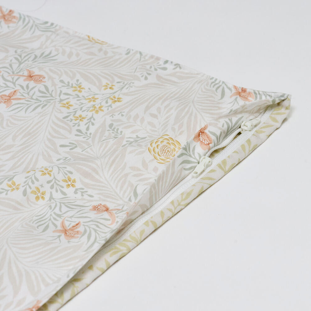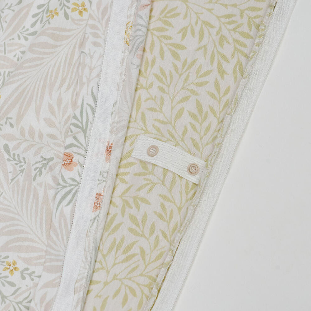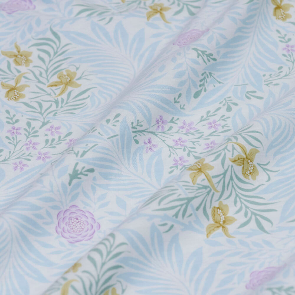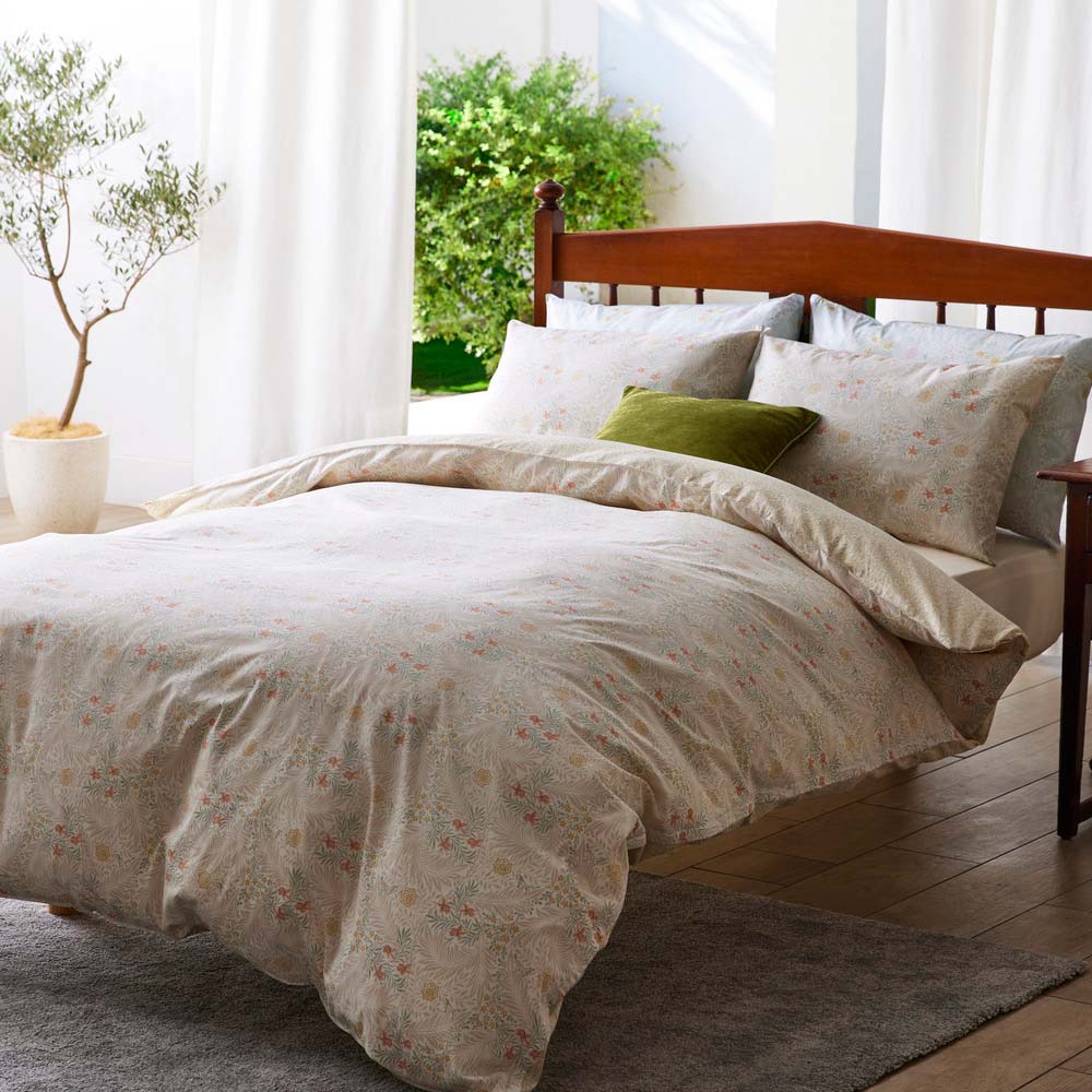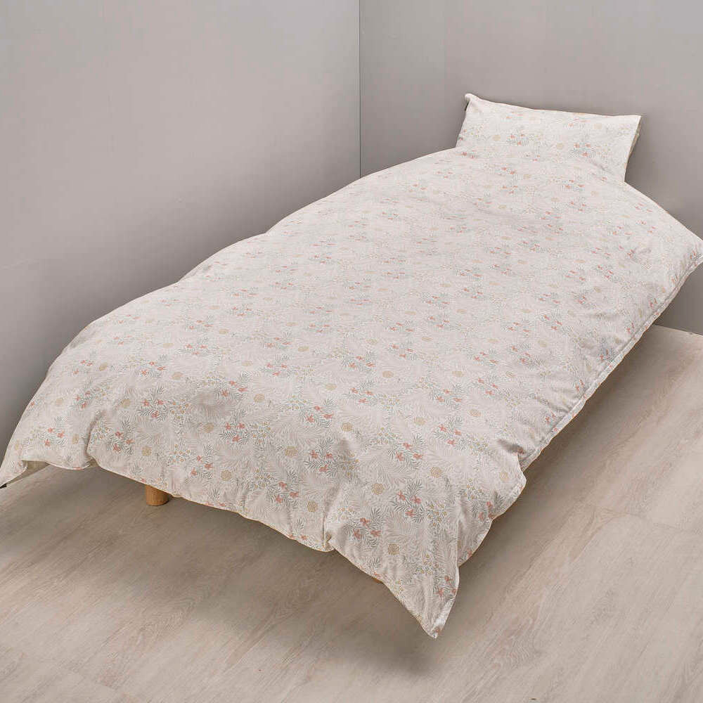 ボタニカルモチーフは今年の幸運アイテム!モリスがもたらす田園風景に癒されて眠る。繊細な花々や渦巻く葉があしらわれたラークスパーは、モリスの中でも可愛らしいデザインの一つとして人気。生地は吸水性・発散性に優れたラブリーゼ糸を使用。肌にあたる部分はコットン100%。心地良い眠りに誘う優しい肌触りです。モリスのデザインで日々の風景に芸術を。19世紀、装飾デザインの新しい時代を切り開いたウィリアム・モリス。『モリス商会』の創業から160年以上たった今も輝き続けるモリスの独創的なデザインを生かしたコレクションをお届けします。■デザイン:ラークスパー螺旋状の葉の間にラークスパー(飛燕草)や繊細な花々が浮かんでいるモリスの代表作。元々モノトーン(1872年)だったデザインを1875年にモリスが12個の版木を用い多色のデザインに変更しました。モリスの作品の中でも特に美しい壁紙デザインの1つと言われている柄です。優しい色合いと流れるような葉のデザインで柔らかな光と風を感じてください。■William Morris(1834〜1896年)19世紀後半、装飾デザインの分野で活躍した英国の芸術家。傑出したインテリアデザイナーであると同時に、画家、詩人、グラフィックデザイナー、出版人、社会主義活動家と多彩な顔を持ち、それぞれの分野で目覚ましい業績を残した。アーツ&クラフツ運動に影響を与え、近代デザインの父とも呼ばれる。