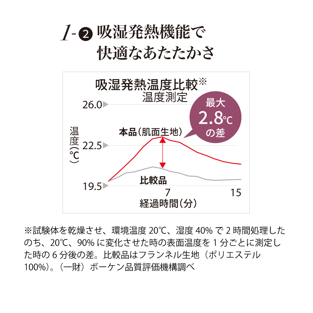 • 吸湿発熱機能により、寝入りから目覚めまで快適な暖かさに包まれます。