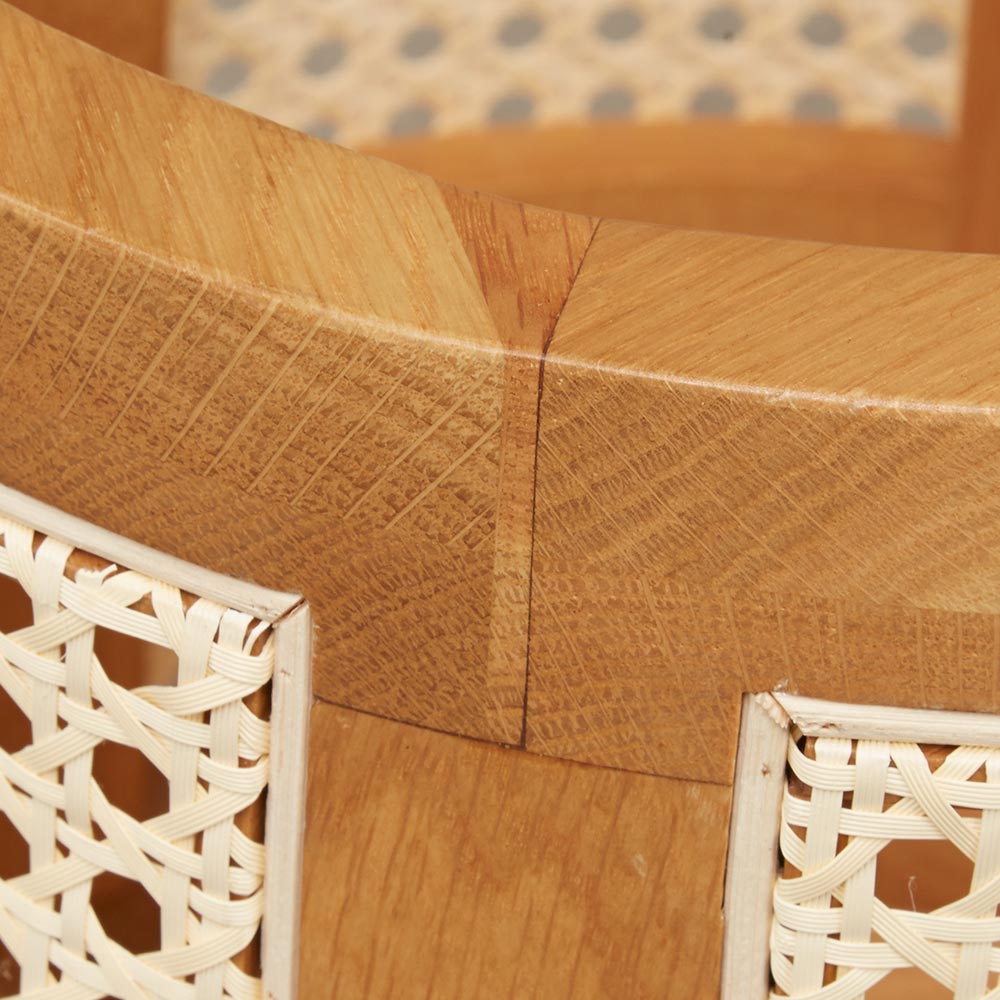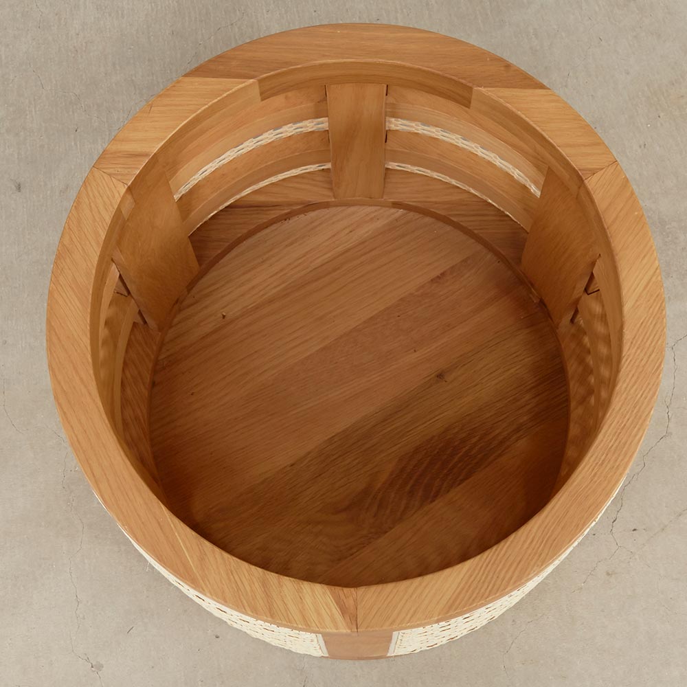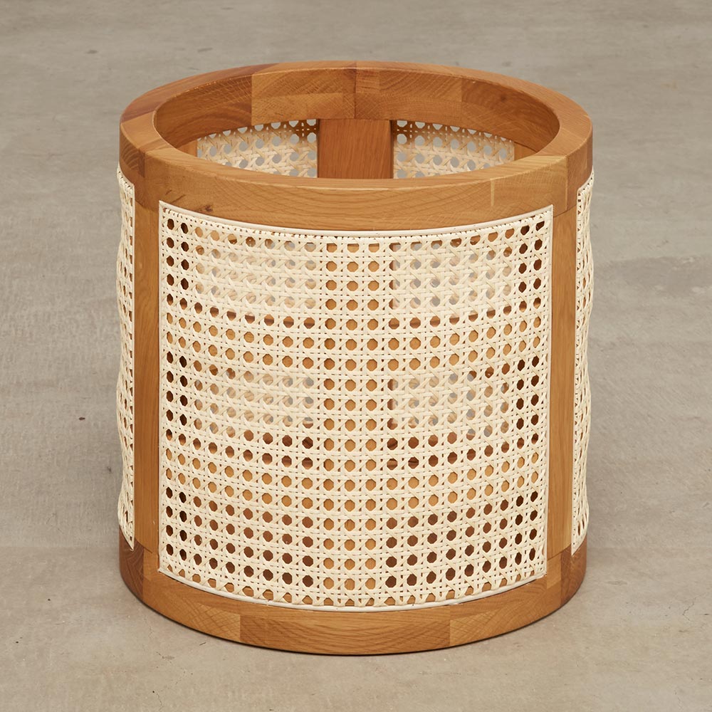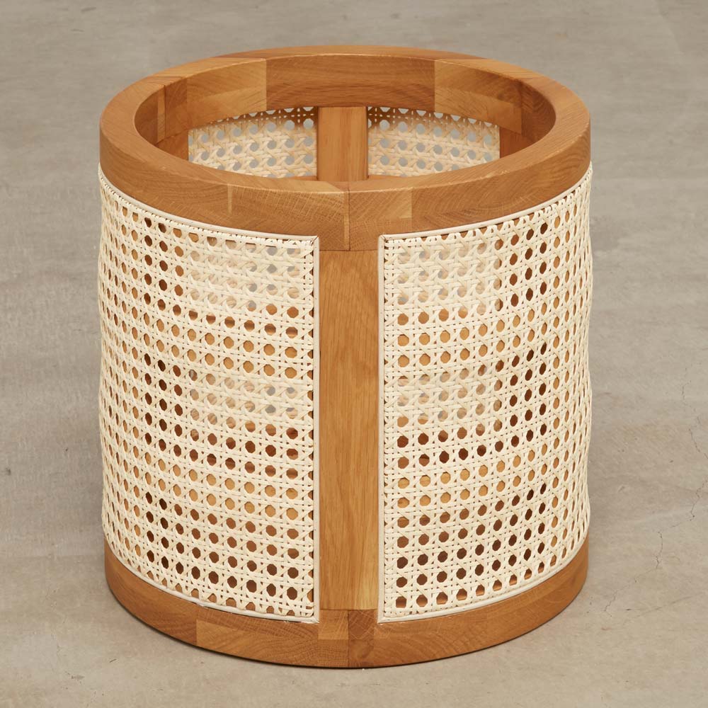 オーク材のフレームにラタンを張った通気性の良いバスケット。プランターカバーや、リビングの小物収納として マルチにお使いいただけます。家具工場でしっかりと作り込まれたディテールで インテリアの質を高めてくれるアイテムです。