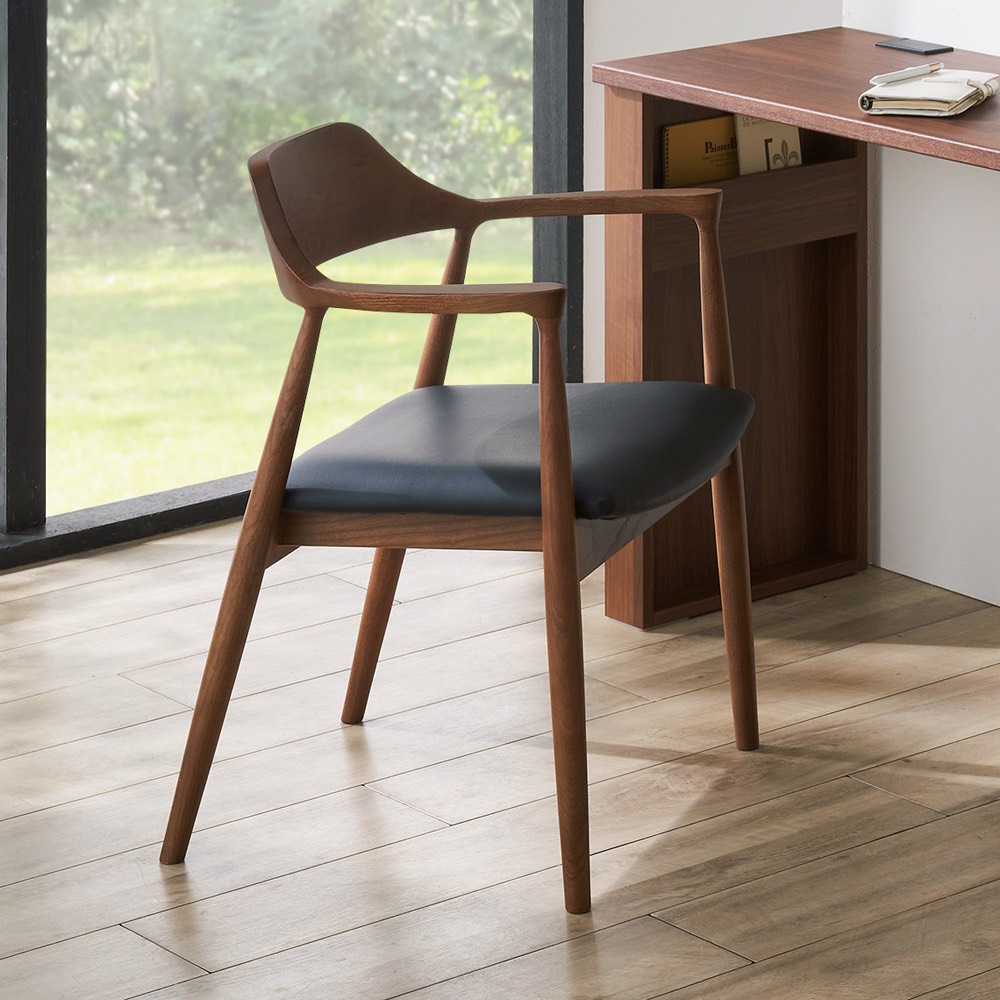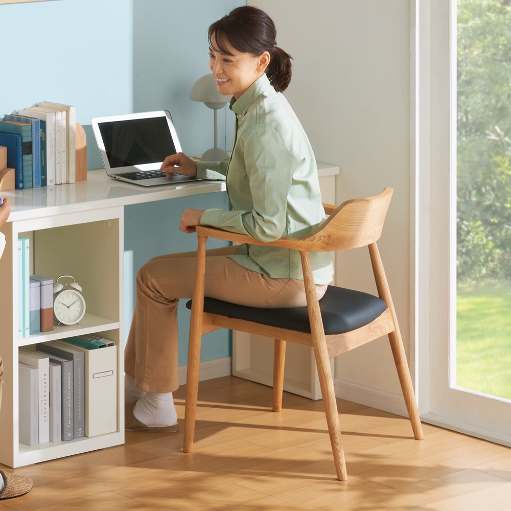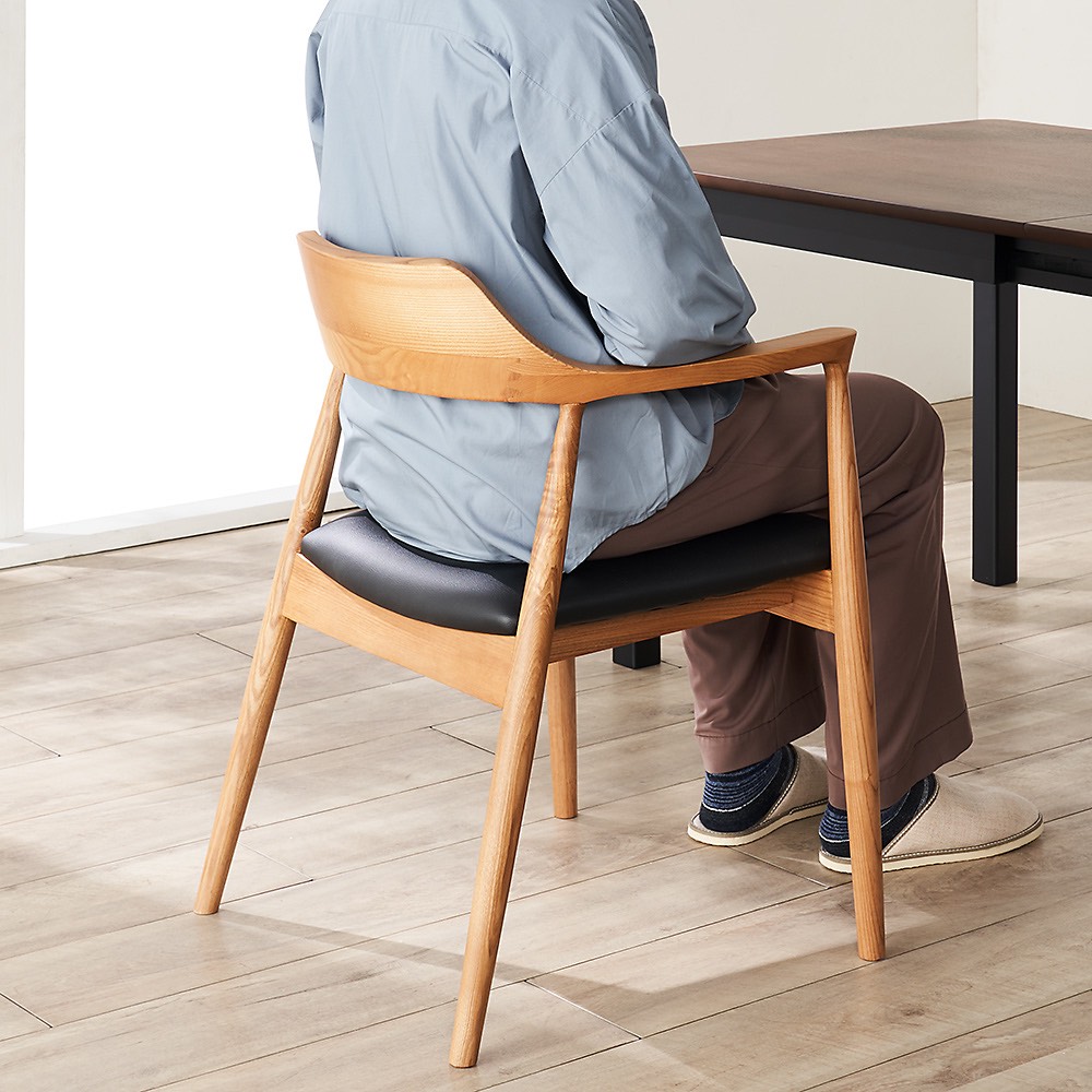 背もたれから肘に掛けて滑らかな曲線が美しいアームチェア。ダイニングでもデスクでも、どちらでもお使いいただける天然木のチェアです。肘掛け付きのチェアは、立ち座りも楽にできます。座面の奥行きも広いので、ゆったりと座ることができます。お家時間を豊かにするアームチェア皆様のお家で過ごす時間が、より豊かなものになるようデザインされた「アッシュ天然木アームチェア」。このチェアは、生活空間に溶け込みながら、日々の生活をより良いものへと変えていくことでしょう。美しいデザイン背もたれから肘にかけての滑らかな曲線が印象的なこのアームチェアは、ただ座るだけでなく、お部屋のデザインの一部としてもその価値を発揮します。天然木の温もりが、洗練された空間を演出し、どんな室内デザインにも自然に溶け込んでいきます。ゆったりとした座り心地広めの座面と肘掛けは、長時間の使用にも疲れにくく、快適な座り心地を提供します。立ち座りもスムーズに行える設計で、幅広い年代の方にご使用いただけます。ダイニングからデスクまで幅広く対応ダイニングチェアとしてだけでなく、デスクチェアとしても最適です。リモートワークの際の自宅での快適な作業空間を提供します。この一脚で、食事も仕事も、そしてリラックスタイムも高品質な時間に変わります。