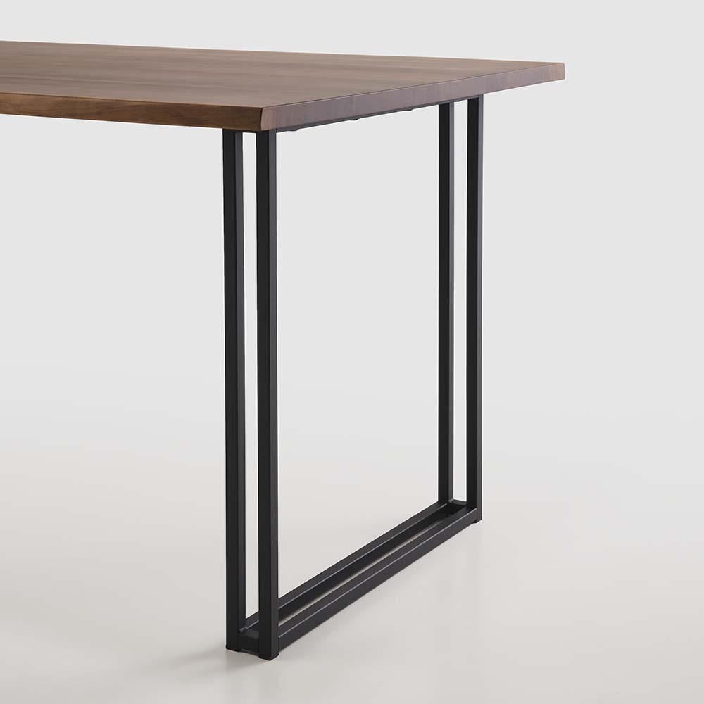 無垢材を使用した天板に、スチールレッグを組み合わせ。異なる表情がそれぞれの味になる一点ものの風格あるテーブル。一枚板のような迫力をより手の届きやすい価格で実現しました。