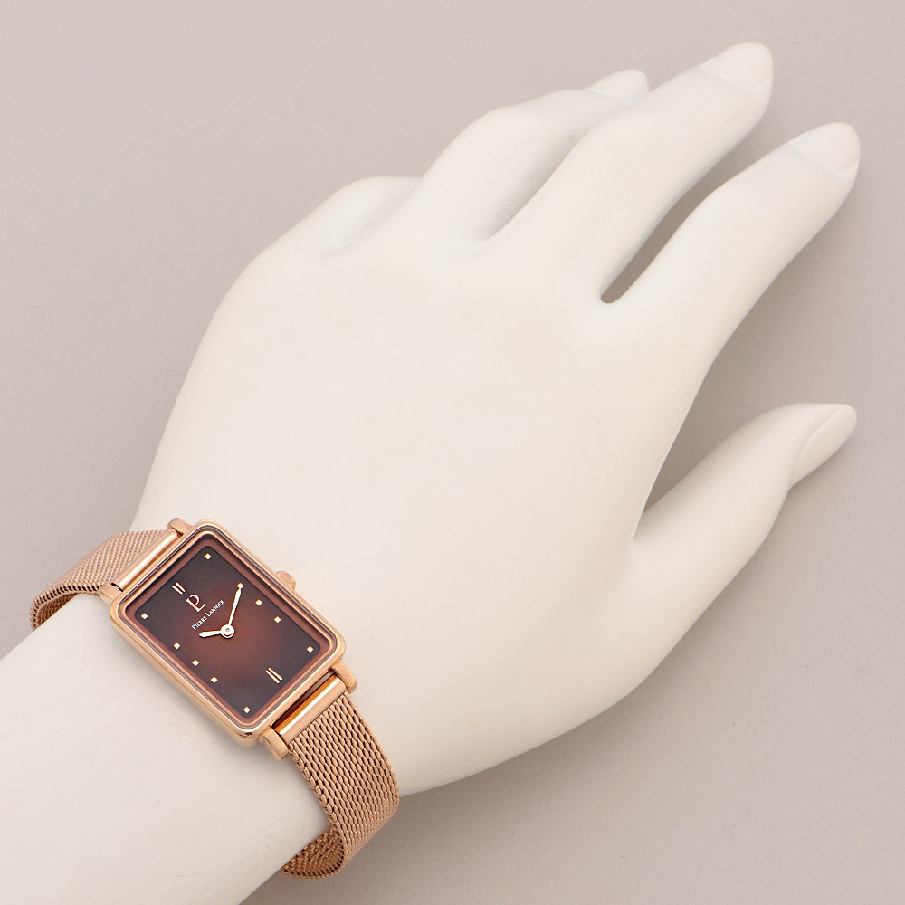 ACCESSORY PICKSいつもの服にプラスするだけで、気分も見た目もぐっとこなれる。デイリーウェアをおしゃれに彩る毎日アクセサリーをご紹介します。肌色を美しくみせるピンクゴールドとショコラブラウンの文字盤が好相性。流行に左右されないクラシカルな佇まいはオンオフ問わず大活躍。