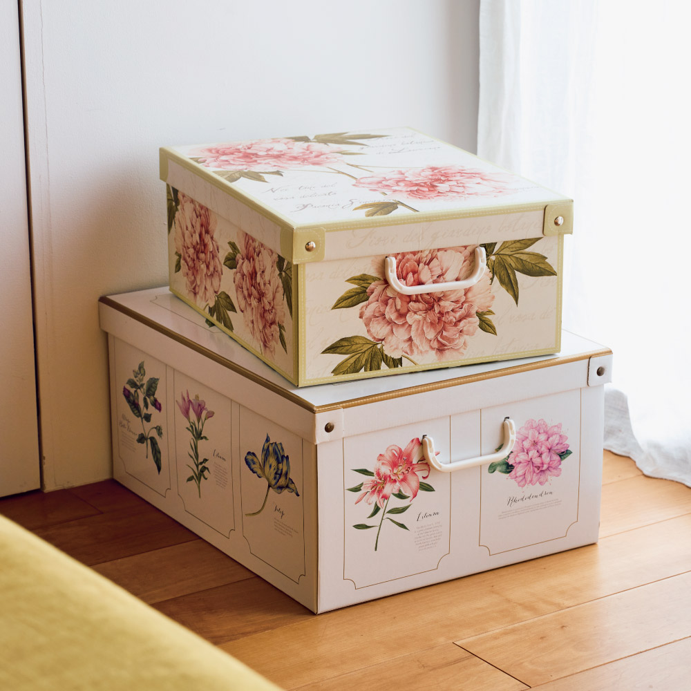 工具不要で簡単に組み立てられるイタリア製のクラフトボックス。(ア)ピオニー ※写真は左から大サイズ、中サイズ ※お届けは中サイズです。
