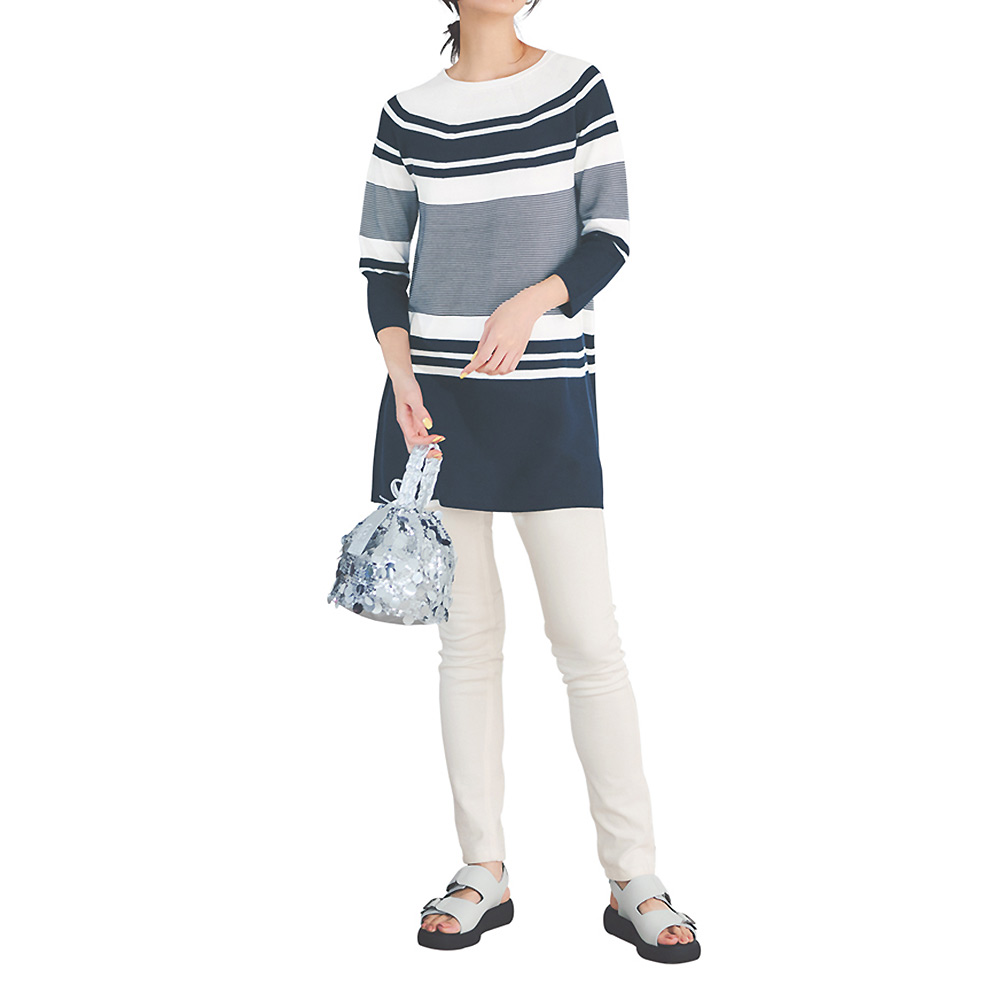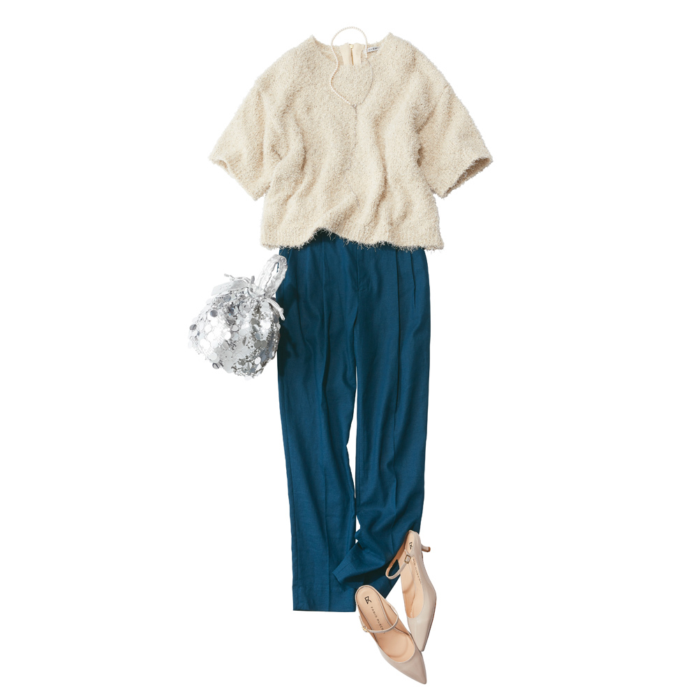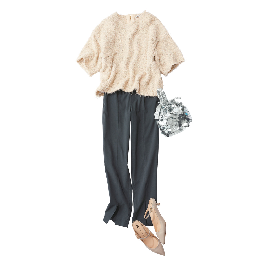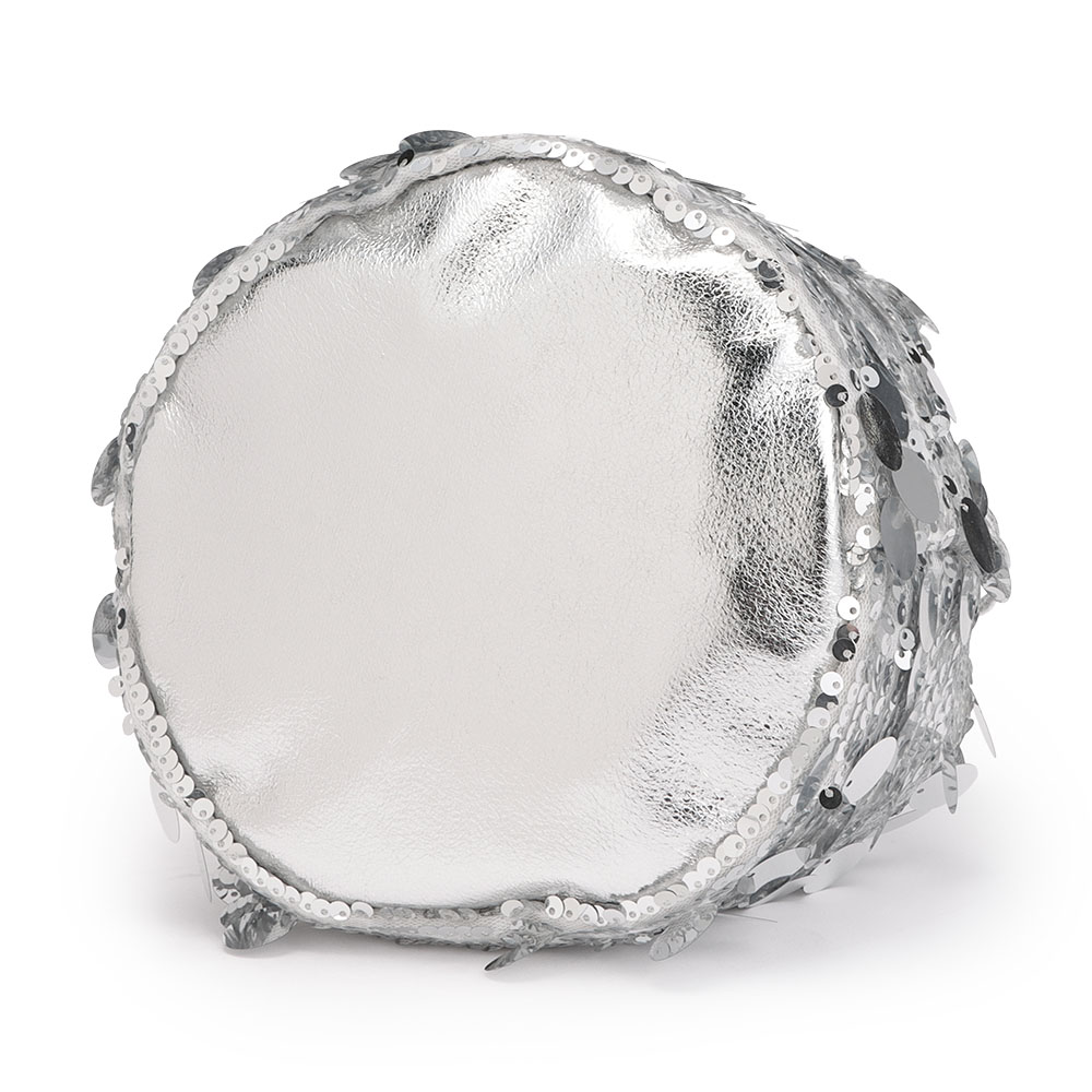 大小2種類のスパンコールをランダムにミックスし、華やかさと立体感を演出。巾着の口に配した紐と持ち手は同色のメタリック生地を使い統一感を。コンパクトながらマチがあり収納力も十分。≫ POINT巾着&小さいバッグが大好き!ミラーのようなキラキラ感が装いを輝かせてくれます。