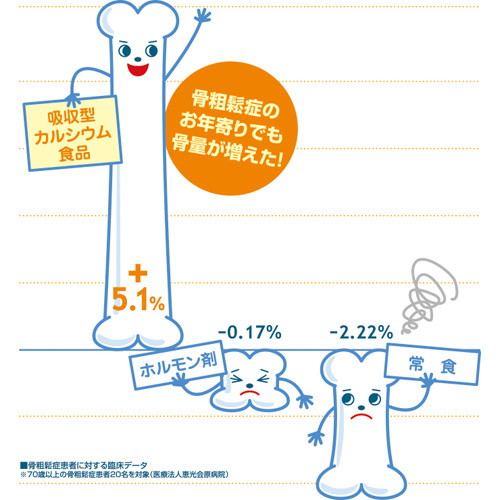 高齢の方でユニカルを4ヶ月間食べて+5.1%も骨量が増えた事例もあり関係者もびっくり!(※3)。ある病院でもお勧めされることがあるほどです。※3:戸原震一他「骨粗鬆症患者に対する漢方治療併用の試み」Pharma Medica Vol.14:10、1996