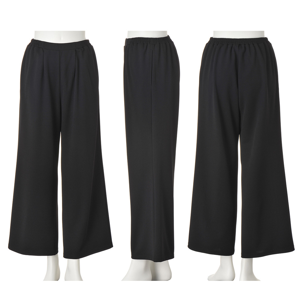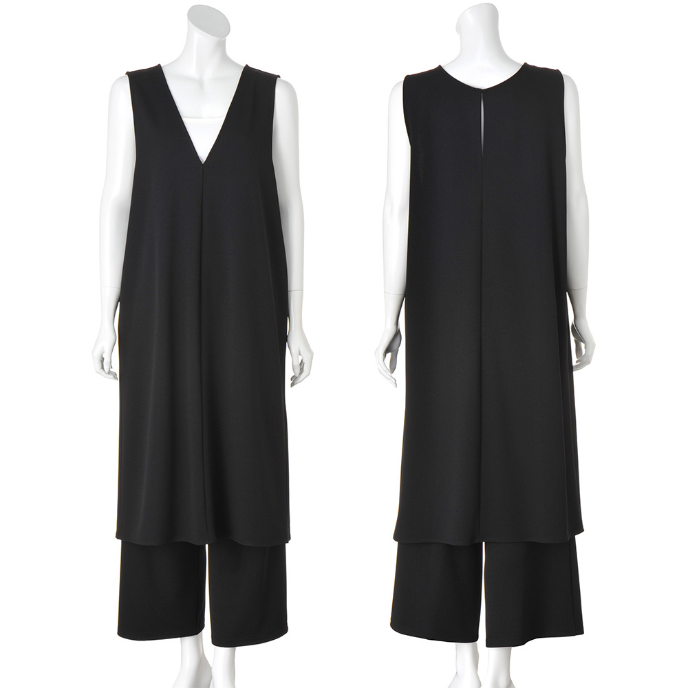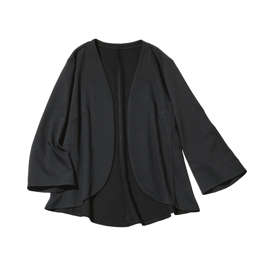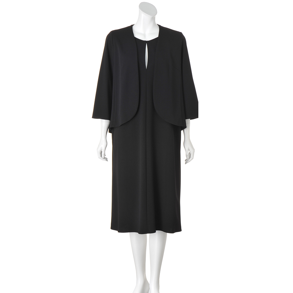 ジャージージョーゼット3点セット横ストレッチで伸びやか、心地よさときちんと感を両立。裏側はさらりとした肌ざわりで着心地◎。UVカット機能付きでシーズンレスに着用でき、自宅で洗濯可能。お手入れが簡単です。[ウォッシャブル|横ストレッチ|UVカット]布帛見えする伸びやかなジャージー生地でジャケット、2ウェイドレス、パンツの3点セットを作りました。きちんと感のなかにもラフさがあり、大人の余裕を感じられるような3点セットです。着回し力抜群でカジュアルからフォーマルまで、幅広いシーンに対応します。JACKETジャケットはノーカラーでナチュラルな着流しデザイン。抜け感のある短め袖で、ゆったりしたアームホールと袖幅がポイント。着心地のよさときちんと感を両立した便利なアイテムです。DRESSミニマルなデザインのドレスは前後で着用可能。ゆったりしたストレートラインでお腹まわりやヒップをカバー。寒くなってきたらタートルネックと合わせるのもおすすめです。PANTS落ち感のあるパンツは、はき心地のよいウエストゴム仕様に。程よいセミワイドシルエットで足のラインをやさしくカバーし、すっきり見せてくれます。両サイドにはポケットがつき、実用性にも配慮。