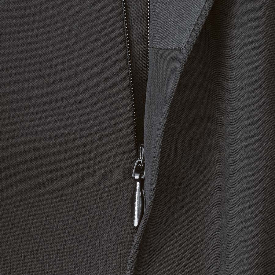 前身頃にコンシールファスナーを配し、着脱のしやすさに配慮。