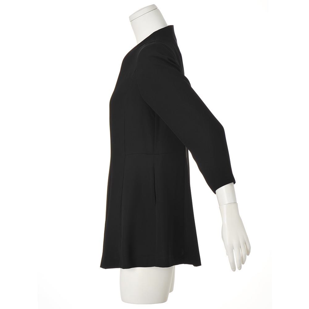 ELEGANT BLACKフォーマルはもちろんデイリーにもフォーマルな場にふさわしい品格を備えつつ、堅苦しさを感じさせない着心地とデザイン。日常にも活躍し、自宅で簡単にケアできる最旬ブラックフォーマルをご紹介します。一着あると安心の頼れるブラウスからだのラインをカバーしてくれるAラインシルエット。顔まわりをすっきり見せるネックライン、気になるヒップが隠れるチュニック丈も嬉しいポイントです。▼フォーマルブラックとは冠婚葬祭など礼節を重んじる場で着用される2度染めした黒のこと。一般的な黒より深みのある漆黒に近く、光沢をおさえた落ち着いた色味が特徴。