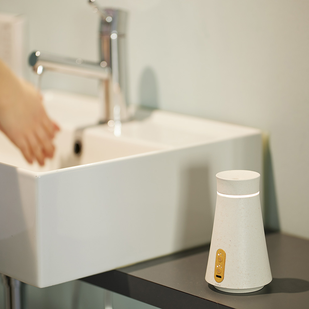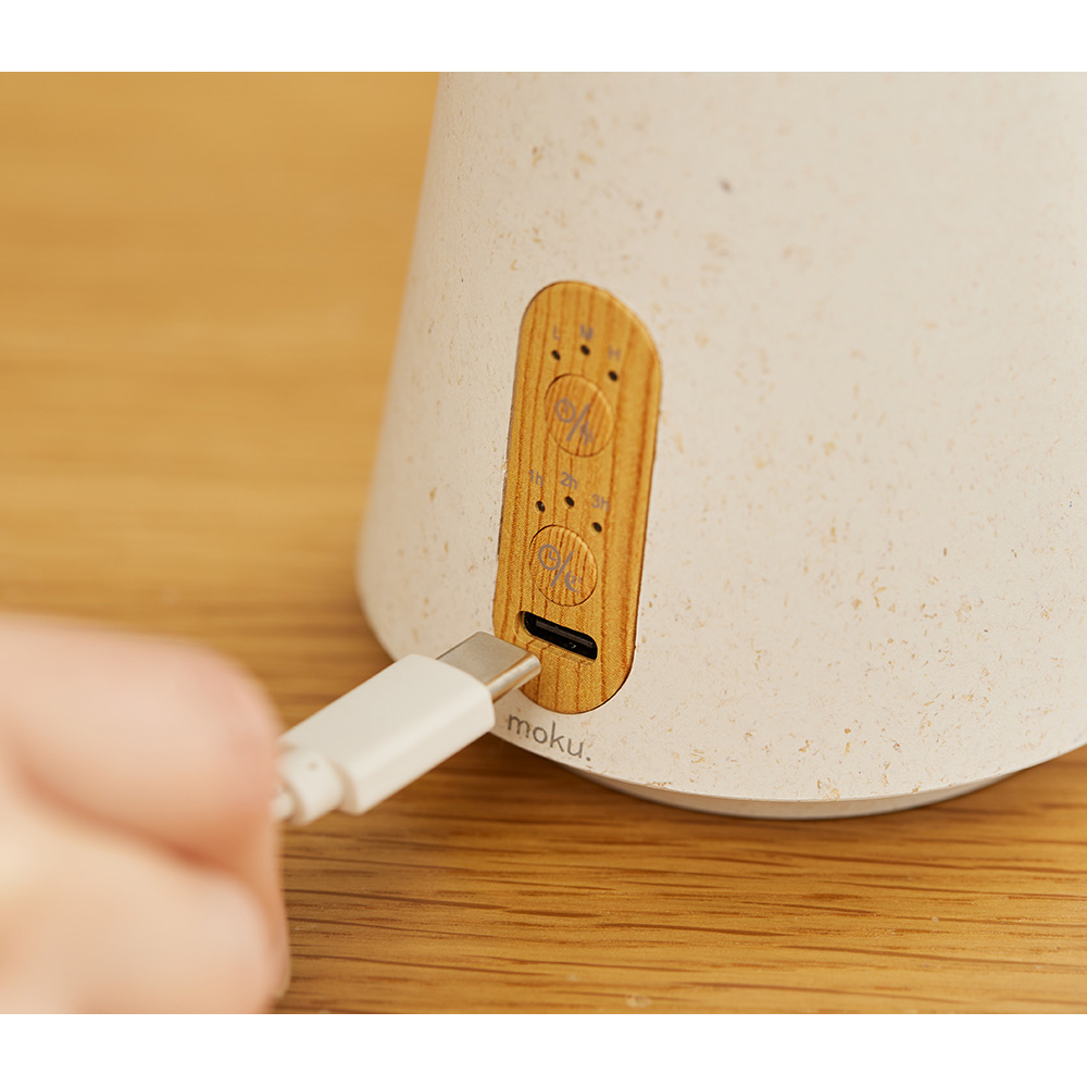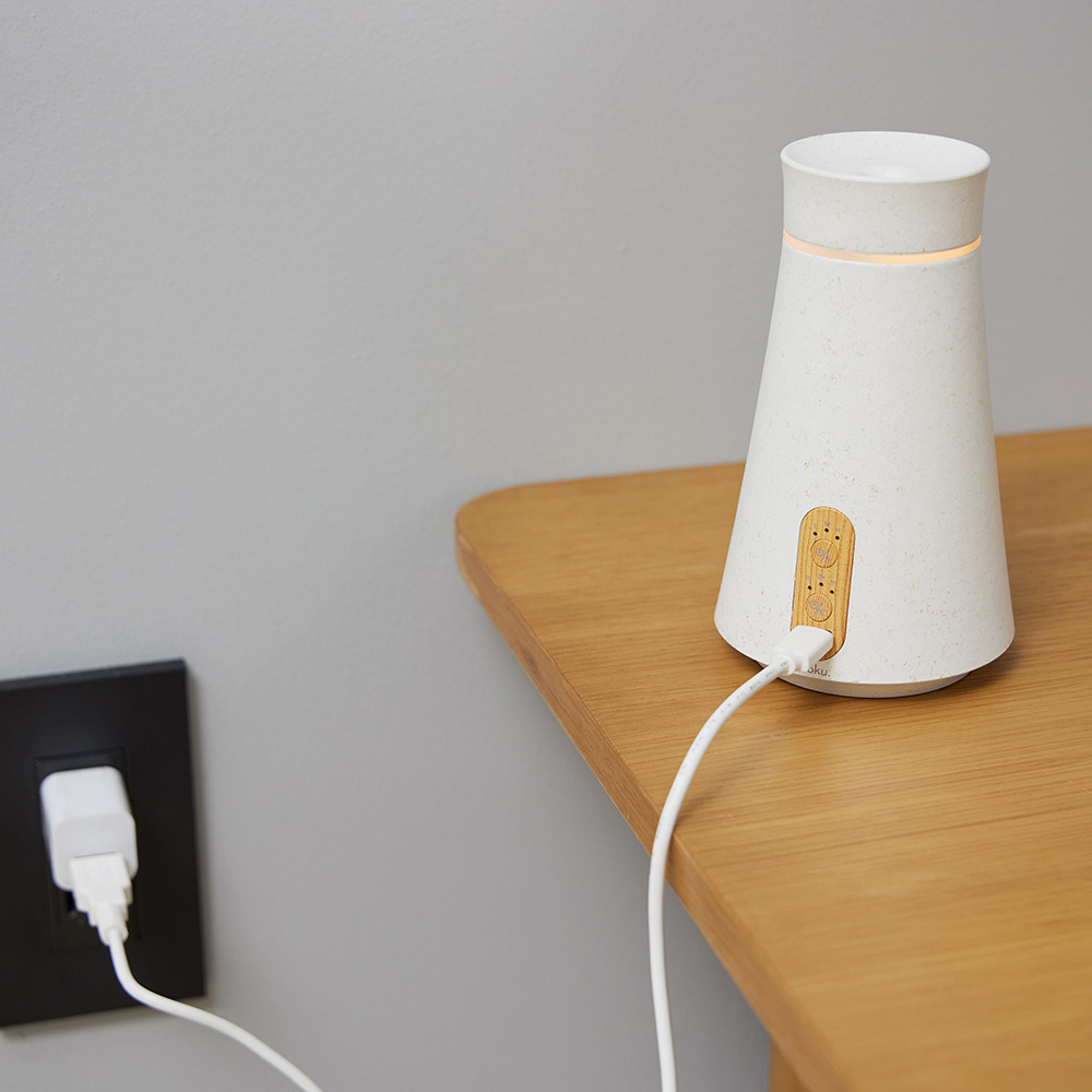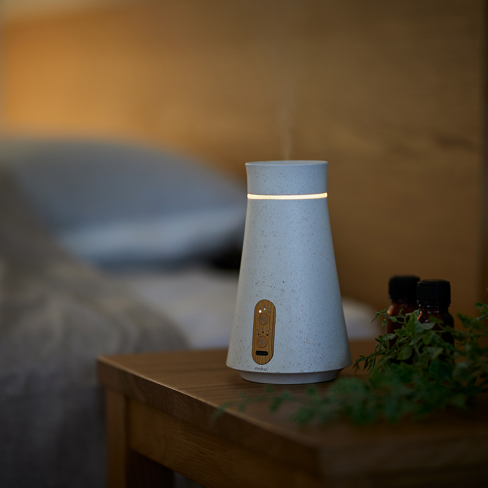 再生資源であるバイオマスを使用した環境に優しいアロマ噴霧器★コードレスなのでどこでも使えます★温かみのある木目調パネルとLEDライトが安らぎを与えます★細かい粒子で、すばやく空間に拡散。粒子が落下しないため机や周囲の家具を濡らしません★静音運転、使用までのセットも簡単、水を使わないのでお手入れも簡単です