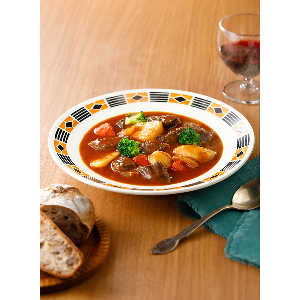 冬のご馳走の定番 ビーフシチュー。牛スジ肉も加圧20分で驚きの柔らかさに。