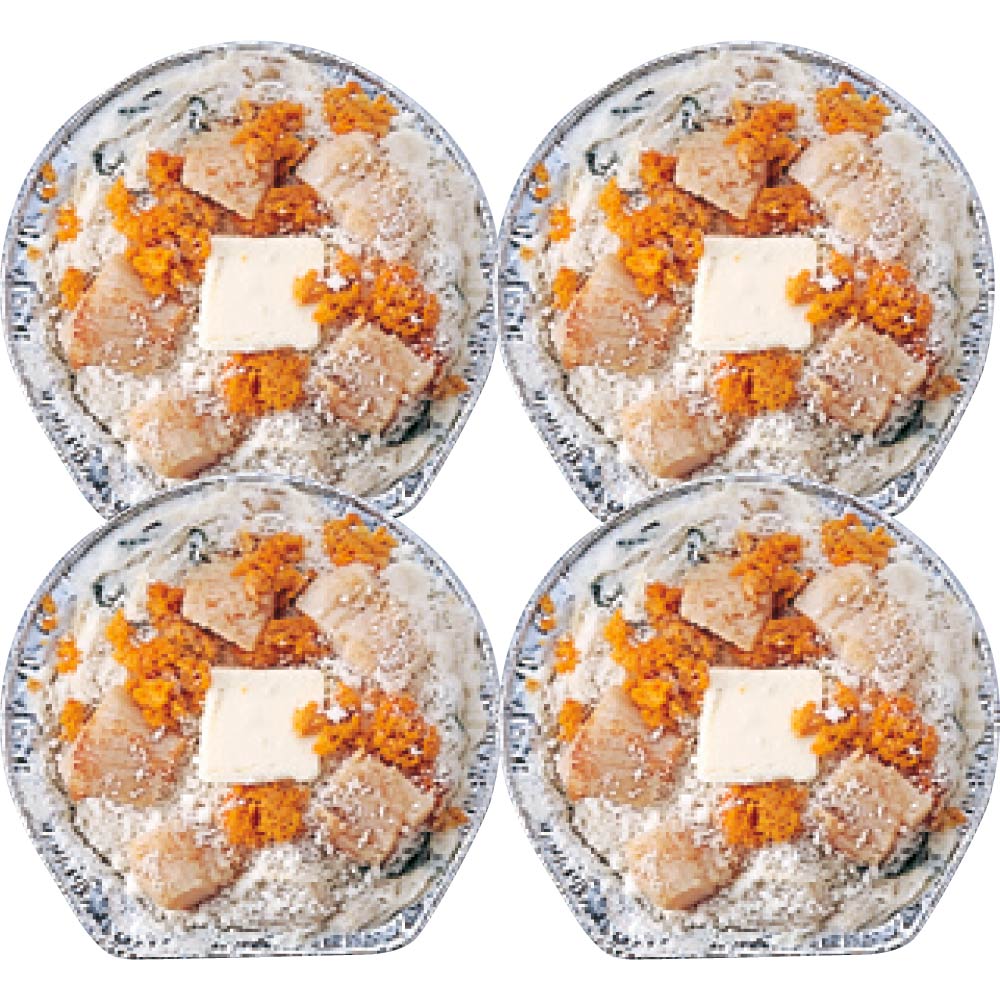 【調理例】 ホタテとウニが贅沢に入った贅沢なグラタンです。濃厚なホワイトソースと肉厚のホタテとワカメが絡みあうボリューム満点のグラタンです。トースターで温めて頂き出来立ての味をお楽しみください。