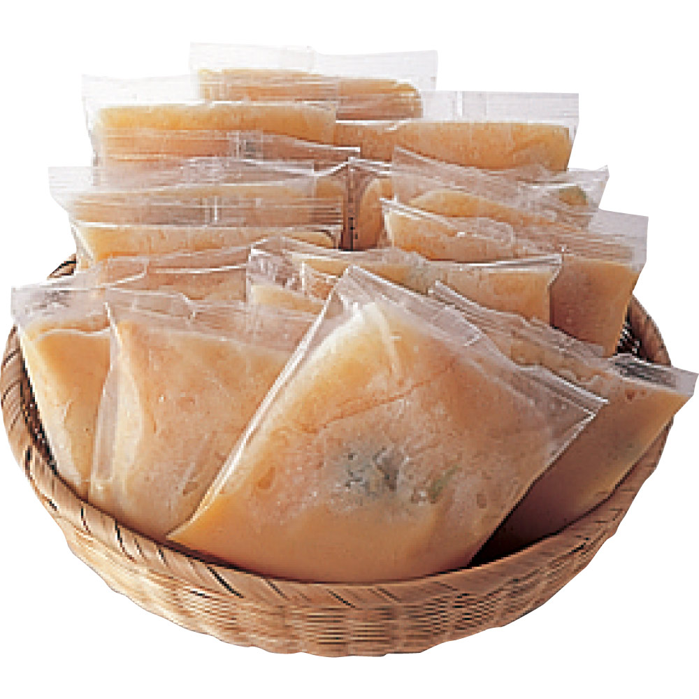 ■お召し上がり方:一人前づつ薄板状に袋詰めしてあり、袋のまま流水解凍又は自然解凍する。器に移し、蒸しもしくは湯煎調理で手軽に調理出来ます。