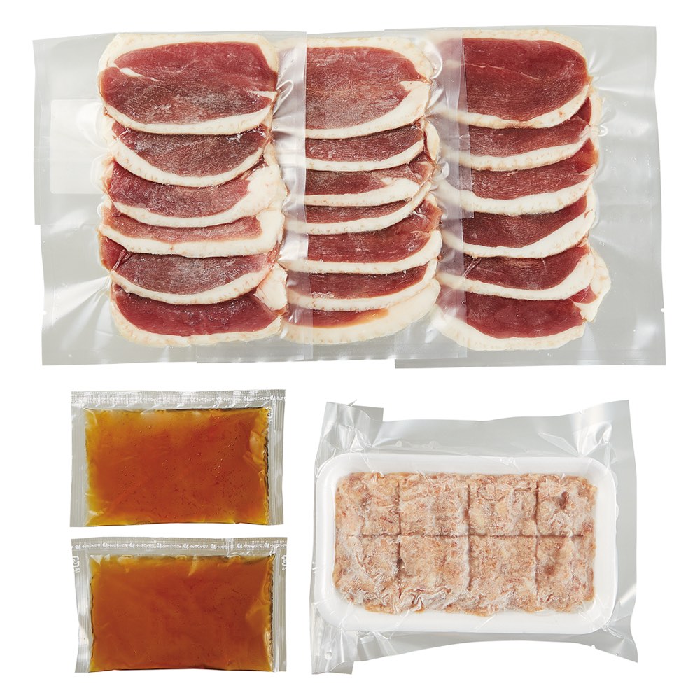 青森県産の鴨肉をたっぷり使用。食べたらクセになる旨みとコク!「フランス鴨」と呼ばれるバルバリー種を使用。合鴨と比べ脂身が少なく上品な鴨ローススライスとつみれの鍋セットです。合鴨を食べて「鴨は苦手」とおっしゃる方にこそおすすめしたいお肉です。【調理方法】1.鴨鍋スープ1袋(50g)あたり500ccの水(湯)を土鍋に張り加熱します。2.煮えにくい具材を入れます。3.鴨つみれを入れて中火にします。4.煮えやすい具材を入れます。5.最後に弱火にして鴨肉ローススライスを入れて赤みが消えたらでき上がりです。しゃぶしゃぶのようにお肉を少しずつ入れながらお召し上がるのがおすすめです。
