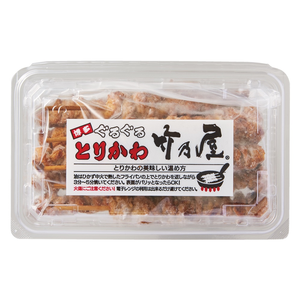 家庭ではなかなか真似できない博多名物、カリカリモチモチ食感。博多名物の焼き鳥(皮)のぐるぐる巻き。編み込むように串打ちした鶏皮を焼き、タレを染み込ませて寝かせる作業を繰り返したこだわりの一品です。ご家庭ではなかなか真似できません。鶏皮は1枚1枚丁寧に巻きつけ、編み込むように串打ちします。しっかりと生の状態から下焼きし、余分の脂を落としてタレを染み込ませます。焼いたあと、一晩じっくり寝かして、余計な脂をいて、焼いては寝かす作業を繰り返し、カリカリ、モチモチの独特な食感になります。その後十分にタレに漬け込みでき上がりです。酒の肴にピッタリの鶏皮です。独特な食感がクセになります。