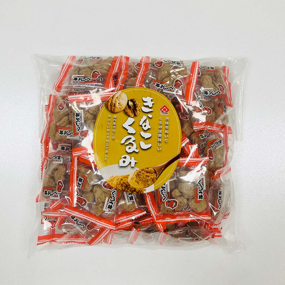 個包装だから便利♪溶かした黒砂糖やザラメにくるみを入れて炊き上げてから、崩れないように丁寧に手作業で国産きなこをまぶしています。どこか懐かしい味わいのお菓子です。溶かした黒砂糖やザラメにくるみを入れて炊き上げてから、崩れないように丁寧に手作業で国産きなこをまぶしています。くるみは特殊な渋抜き加工をすることで渋みが残っていません。黒砂糖やきなこの風味との相性をさらに高め、いくつでも食べられる美味しさに仕上げました。どこか懐かしい味のするお菓子です。大袋に60個も入っているので、お友達とのお茶会やお出かけの際のお供にも最適です。