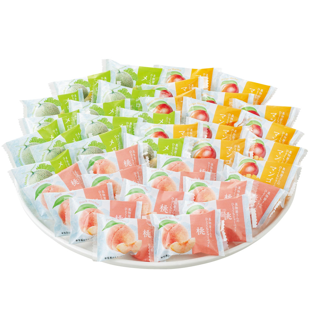岡山の果物専門店「吉英フルーツ」おすすめのひと口サイズのシャーベット※配送エリアを限定させていただいております。島しょ部地域にはお届けできませんので、あらかじめご了承ください。 "岡山の果物専門店「吉英フルーツ」おすすめのひと口サイズのシャーベット。メロン・桃・マンゴーのおいしさを詰め込んだ風味いっぱいのアイスギフトです。岡山の果物専門店「吉英フルーツ」創業明治22年、老舗フルーツ専門店。岡山特産のさまざまな果物をお届けしています。100年以上の果物専門店の知識をもとに、ご満足いただける逸品を取り扱っています。"