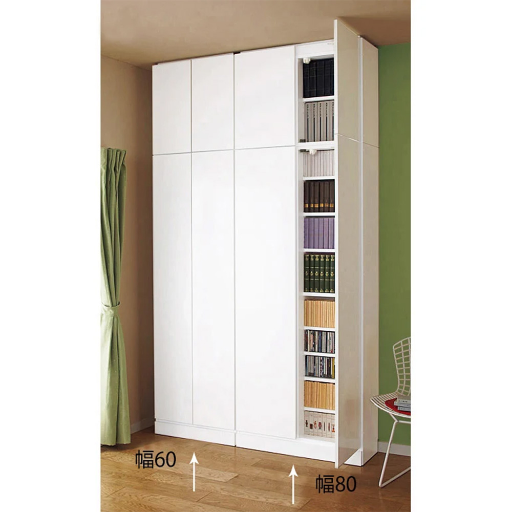 ミラー扉、板扉が選べるシンプルなデザインでスッキリとした印象のブックシェルフ。頑丈棚板で大量収納が叶う、人気のロングセラー商品です。サイズオーダー上置き(別売り)と組み合わせれば、壁面収納が実現。【POINT 1】 頑丈で大量収納OK。●棚板1枚当たりの耐荷重約20kg。●3cmピッチの棚板で、お客様の用途に合わせた調節が可能です。【POINT 2】 お部屋をすっきり見せる工夫。●取っ手のないすっきりデザインのプッシュ式扉。●幅木対応で壁にぴったりと設置できます。●薄型スリムで、廊下やリビング、寝室など省スペースでお使い頂くのもおすすめです。●地震の揺れを感知するとロックがかかる耐震ラッチ付きで安心。●文庫本、コミック、雑誌、CD・DVDなどをすっきり収納するのに便利です。●廊下や玄関でシューズボックスとしても活躍します。【POINT 3】 女性も安心!組立不要の完成品でお届けします!●面倒な組立は不要。届いてすぐにお使い頂ける、人気の完成品タイプです。●オフィス、書斎、リビングやキッズルームにある大量の本を、一気に収納してすっきりできます。●安心の日本製(国産)。職人が心を込めて丁寧に仕上げます。【POINT 4】 まるで造り付け家具のように、美しく。●シンプルでお部屋に馴染みやすく、リフォームしたような空間が叶う壁面収納書棚です。●前面扉のをタイプを選べるのが人気のポイント。●前面をミラーすれば、圧迫感なく部屋を広く魅せる視覚効果も。●前面を本体色に合わせれば、壁と馴染んですっきりとしたお部屋に。●高さがオーダーできる上置き(別売)と合わせれば、天井まで無駄なく大量収納できるシェルフです。