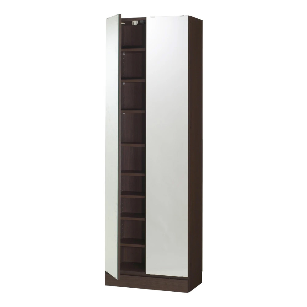 ≪組合せ例≫(ウ)前面:ミラー・本体:ダークブラウン ミラータイプはお部屋を広く演出します。 ※写真は、本体と上置きの組合せです。(左)幅80cm、(右)幅60cmタイプです。