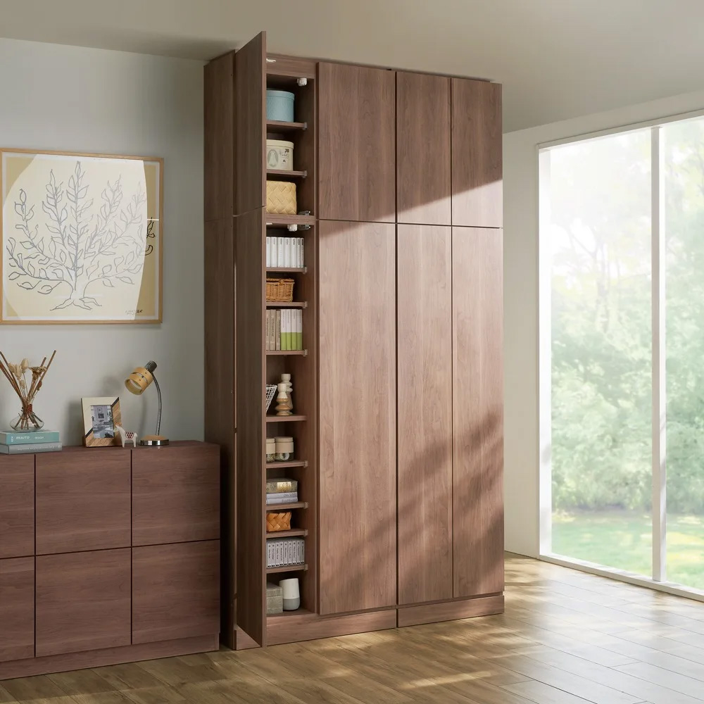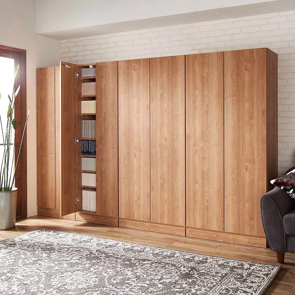 コーディネート例(カ)前面:ウォルナット・本体:ウォルナット(左)幅80cm (右)幅60cmタイプ 天井高さ250cm 上置き(別売り)との組み合わせ例です