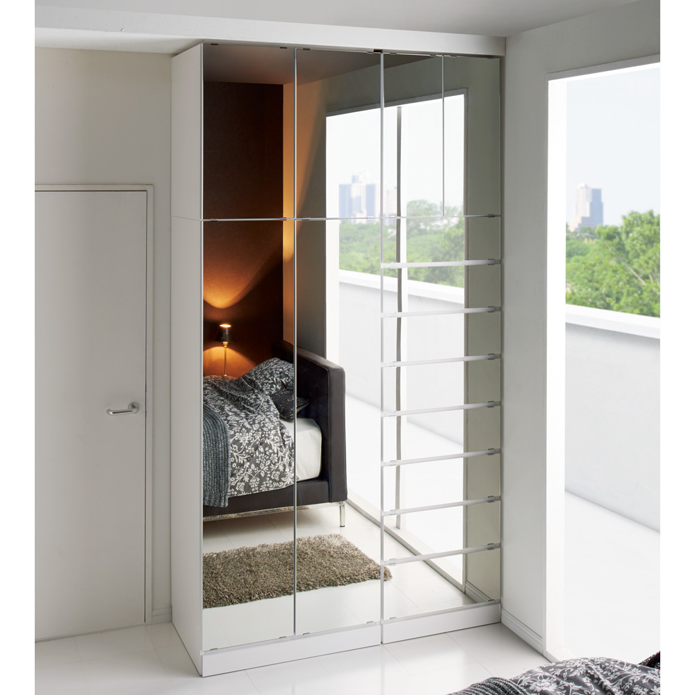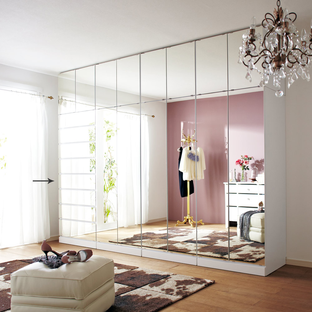 部屋を広く見せる収納におすすめな「ミラー扉」 クローゼットのように収納力はたっぷりなのに圧迫感なく収納空間が実現します。姿見としても活躍します。