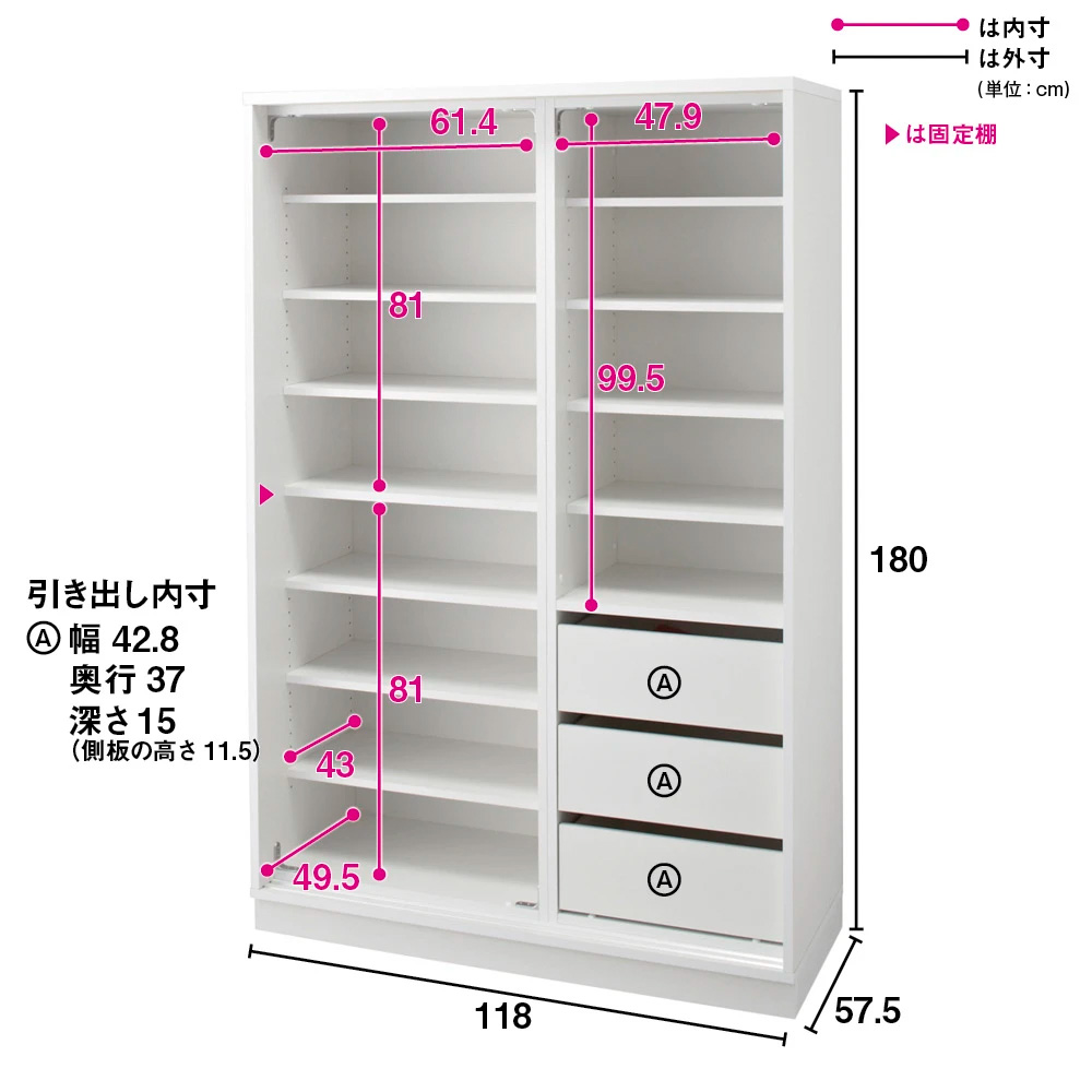 棚板は3cmピッチで可動。収納物にあわせて設置できます。