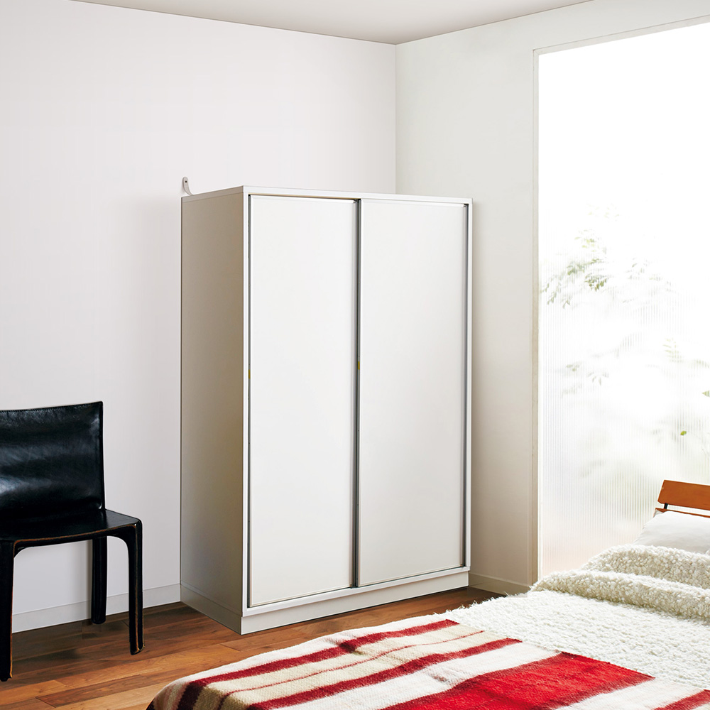 輝くミラーで憧れのクローゼットルームを演出する総ミラー貼りのワードローブ。開閉スペースをとらない引き戸仕様なので、他の家具との距離感などレイアウトの自由度がよりアップ。別売りの上置きを組み合わせて壁一面が収納スペースに。毎日のコーディネートを、こころゆくまで楽しめる◆ウォークインクローゼット並みの収納も可能。衣替えの手間いらずで、お気に入りの服を通年スタンバイしておけます。◆前面ミラータイプは、映り込み効果により、お部屋が明るく、広く感じます。◆板扉タイプは前面に丈夫なオレフィンシートを採用。光沢感たっぷりのホワイトです。◆美しさと収納力を兼ね備え、見た目は、まるで造り付け(オーダー)家具の様な印象です。◆上置き(別売り)と組み合わせれば、壁一面が優雅な収納スペースに生まれ変わります。リノベーションしない収納計画にも、リノベーションしたお部屋にも◆大容量の衣類収納を叶えるワードローブシリーズ。ハンガーや棚、チェストを備えた充実機能で、お手持ちの衣類をすっきりまとめることができます。リノベーションよりもぐっと低予算で、衣類収納をより使いやすく、美しくバージョンアップできます。◆リノベーションして広くなったお部屋にもおすすめ!天井までの壁一面を生かして大きな収納空間を作れるので、お部屋がいつも片づいた状態を保てます。前面ミラータイプなら、リノベーションできれいになったお部屋が映り込み、より広く感じさせてくれる効果もあります。【製品情報】[色の種類]◆落ち着いたモダンな印象のダークブラウン。◆明るく清潔感のあるホワイト。◆お部屋に溶け込む優しいメイプルナチュラル。[サイズ・バリエーション]◆奥行は引き戸式の3タイプ、チェストタイプ全て58cmの共通サイズ。◆引き戸式3タイプの幅は88cmと118cm、さらに超ワイドの148cmまで3サイズをご用意。◆タイプは、ワイシャツやブラウス、バッグなどアレコレしまえる棚タイプと、ジャケットなどの上着やスカートなどがたっぷりしまえるハンガータイプ、さらにその両方を兼ね備えた充実のハンガー棚タイプをご用意。◆スライドレール仕様の引き出しが3杯付いています。◆扉の枠にはアルミを使用し、美しくスタイリッシュな印象をさらに高めます。◆チェストタイプは幅57.5cmと77.5cmの2サイズをご用意。◆引き出しは全部で7杯付いています。◆上置き(別売り)は天井高さ208〜272cmの範囲で1cm単位でのオーダーが可能。◆幅57.5cmはプッシュ扉タイプになります。[機能・構造・仕様]◆可動棚板は収納物に合わせて3cmピッチで可動できます。◆本体には転倒防止バンド付きで、安全性にも配慮。◆上置き(別売り)は、天井突っ張り式で、安定度の高い仕様。
