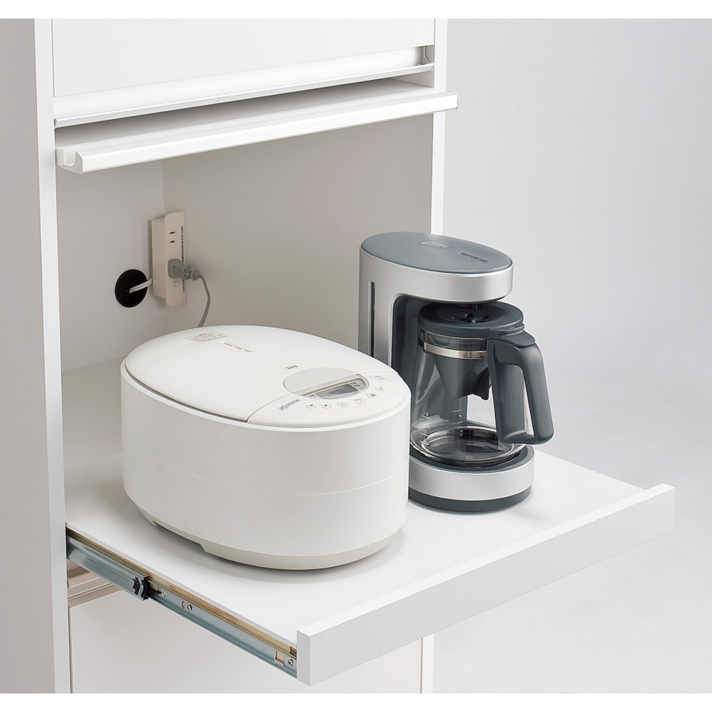 スライドテーブル 家電収納部の下段はスライドテーブル付きで、蒸気の出る家電も安心。