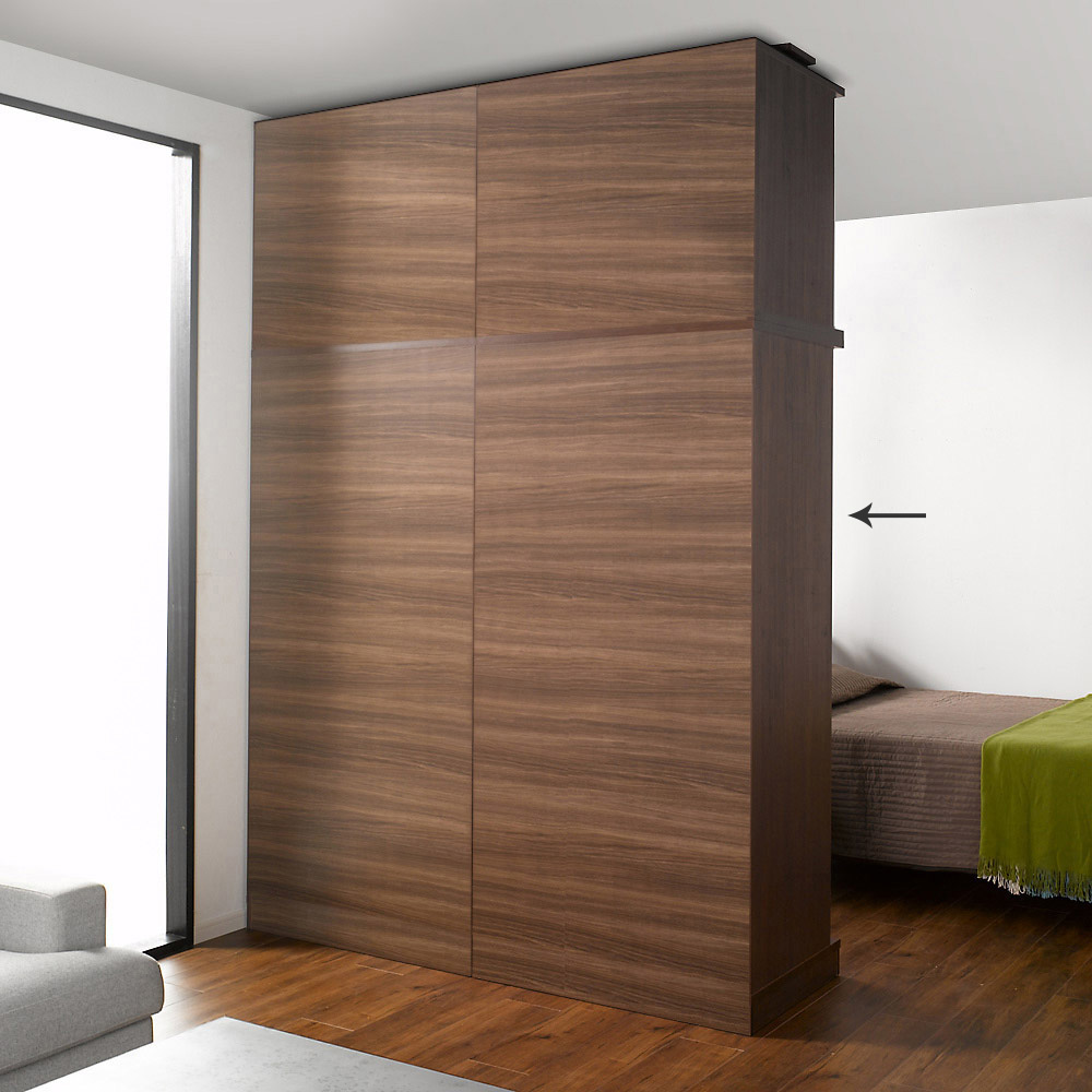 引き戸式で開閉スペース不要省スペースワードローブ。背面も間仕切りパネルの高級仕様。 ≪組合せ例≫※左からハンガー・棚幅88、ハンガー幅88cm 上置き(別売)を置いて撮影しています。 (ア)ダークブラウン右棚