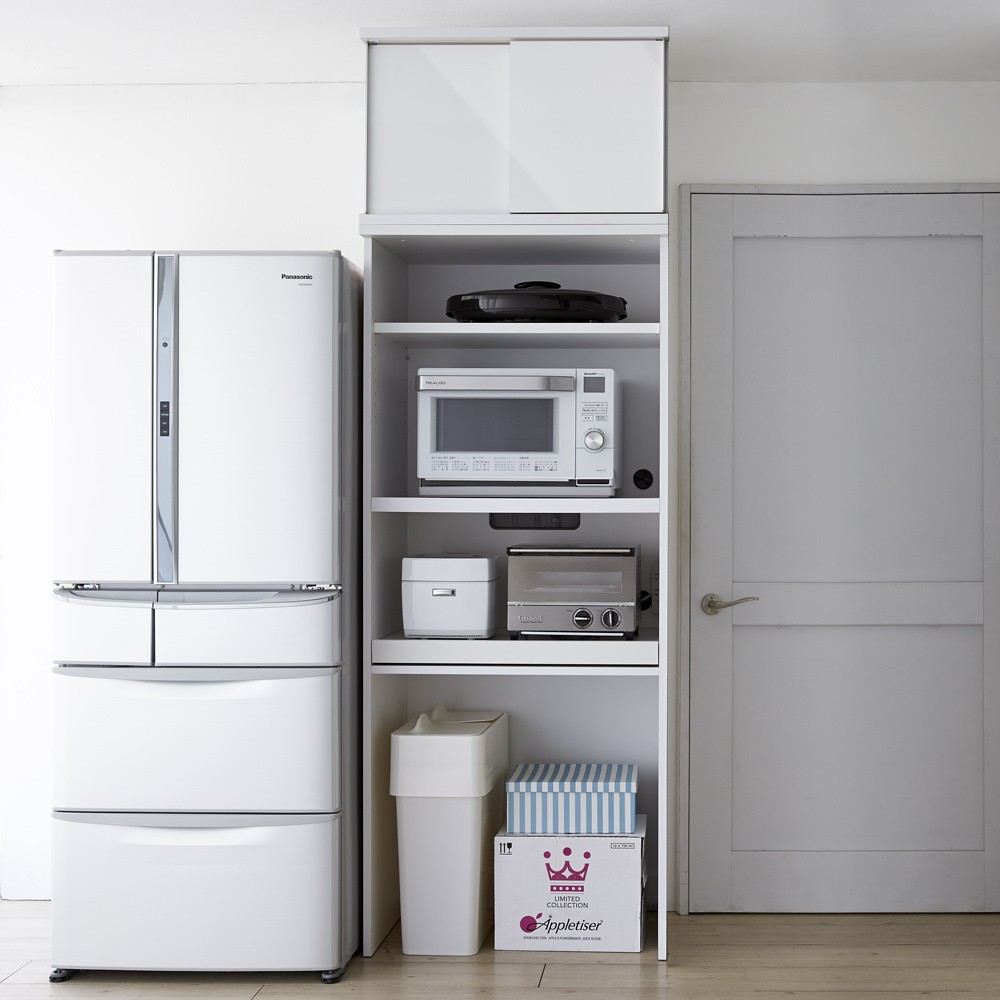 コーディネート例(ア)ホワイト 家電が使いやすい、オープンタイプの収納棚です。※写真の天井高さ210cm