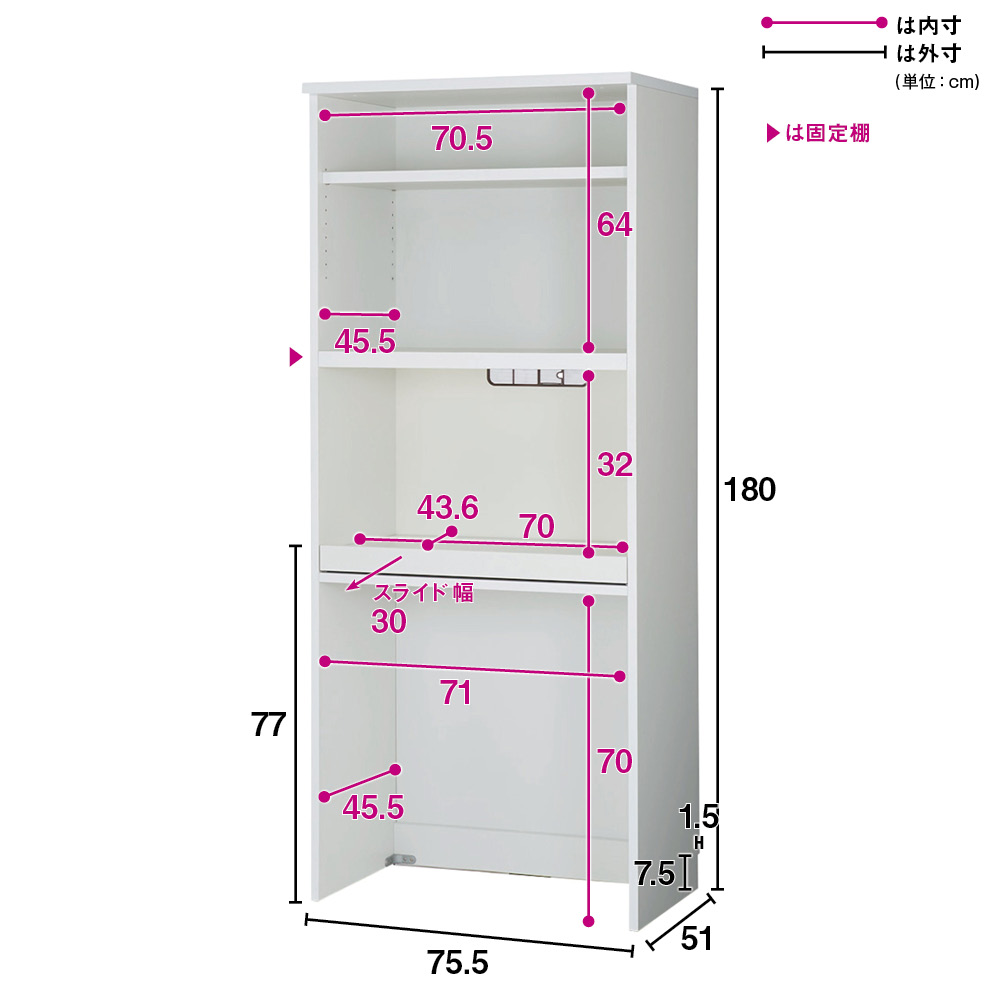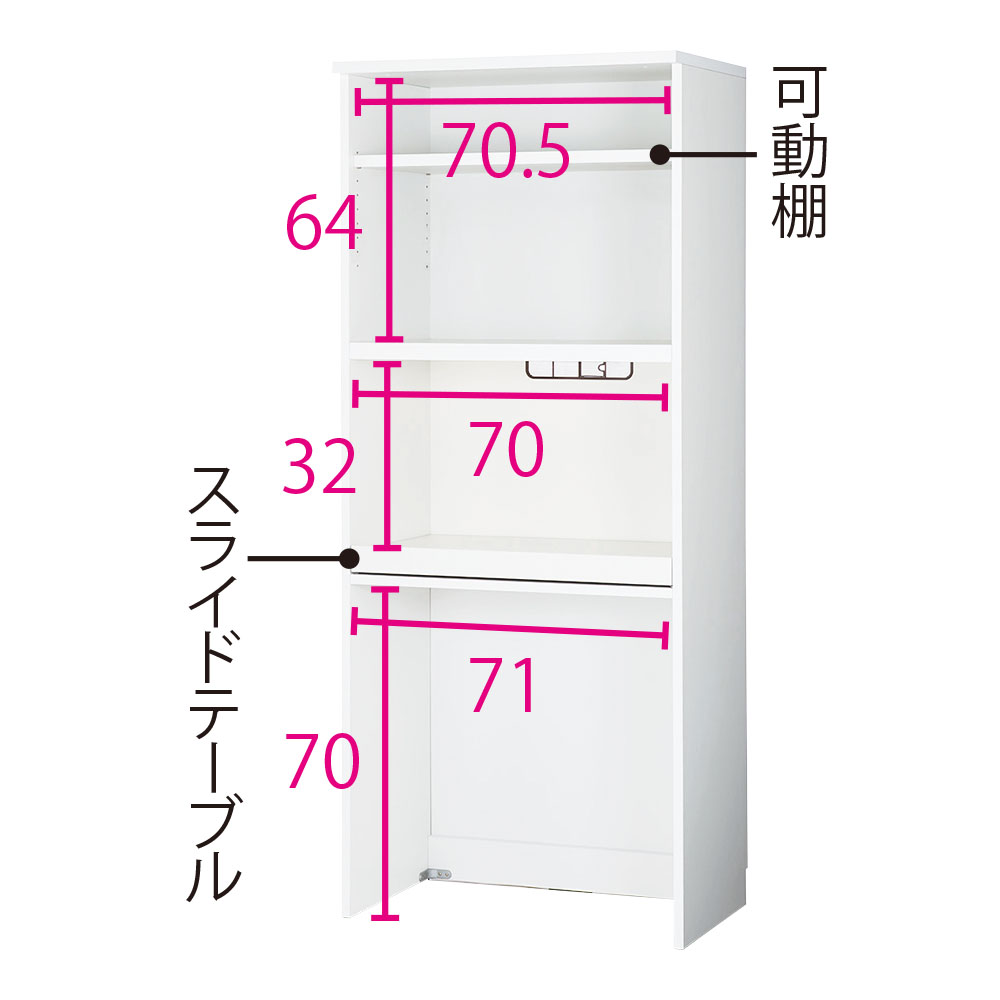 (ア)ホワイト お届けは【レンジラック 幅75.5cm】です。※オープン部奥行42.5cm