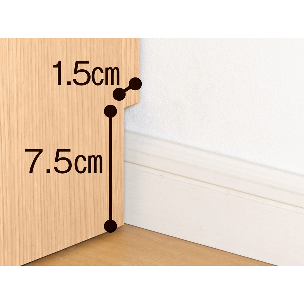 幅木があっても壁にぴったり付けて設置可能。
