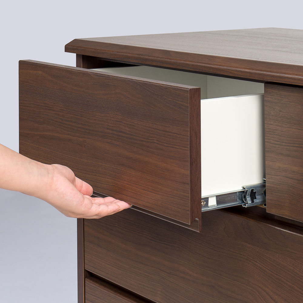 引き出しは全段、奥までしっかり開けられて、抜け落ちる心配もないストッパー付きフルスライドレール仕様です。