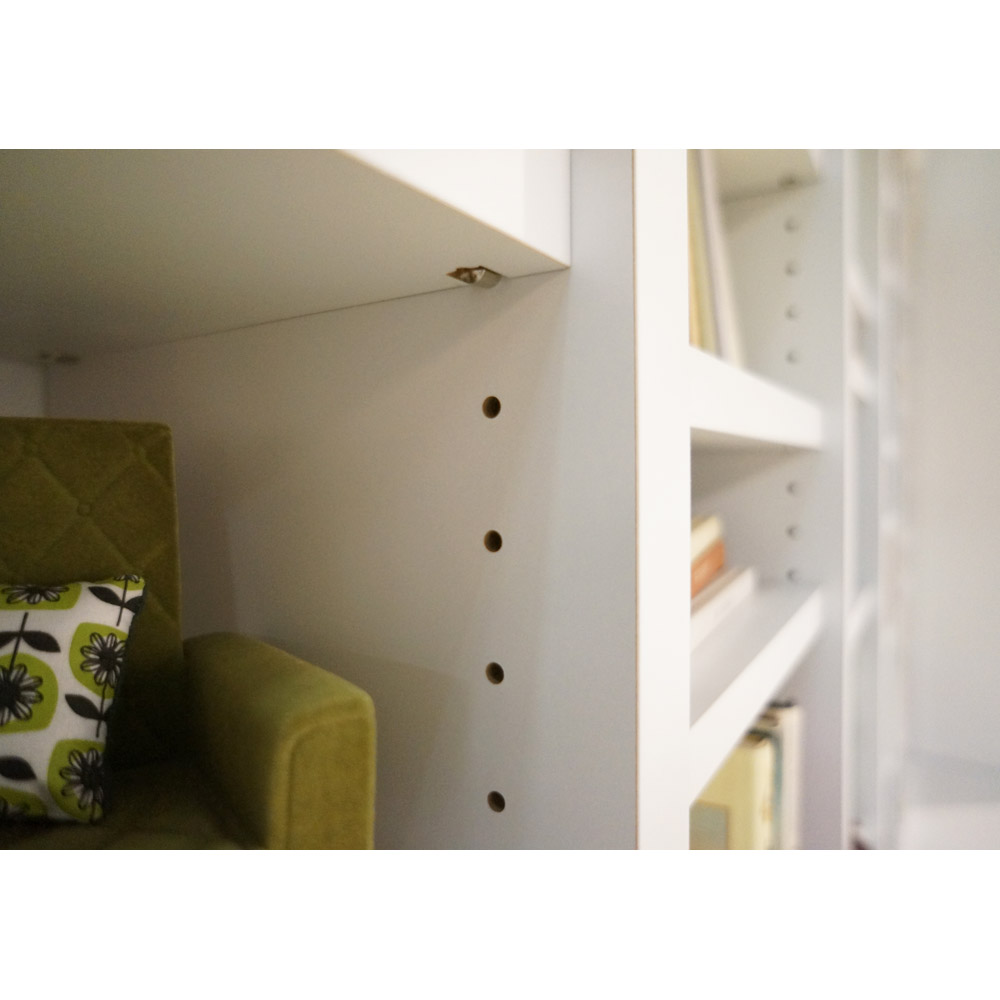 【見つかる】棚板は幅が短く、全段3cmピッチ可動式。サイズやジャンルごとに分類しやすく検索性もUP。