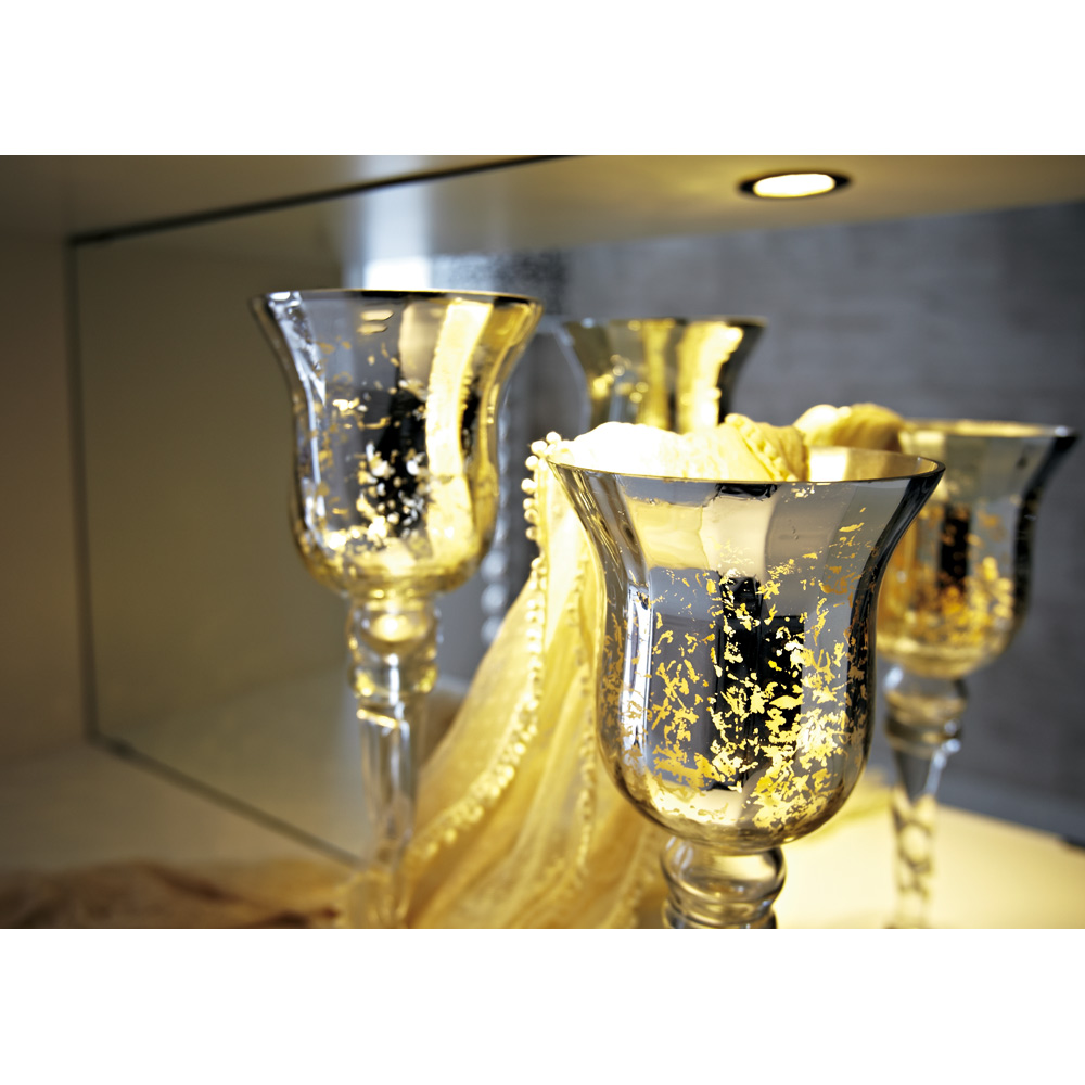 オープン部のダウンライトをつければ、背面のミラーに輝きが映りこんで、さらに華やかに。