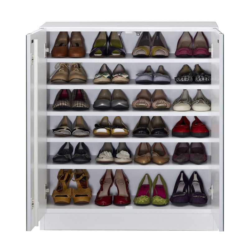 (ア)前面:ミラー・本体:ホワイト 約24足収納可能。
