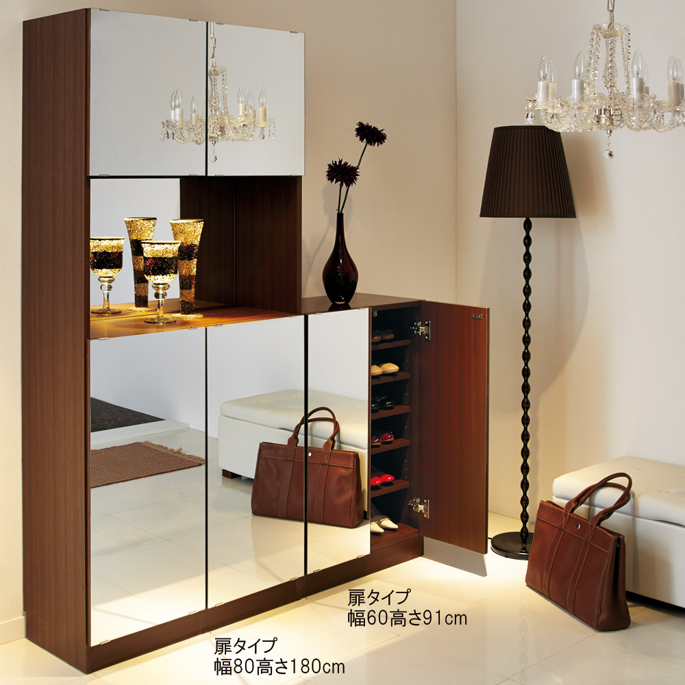 開けるたびに幸せを感じるシューズクローゼットを。「靴のコレクションからファッションに合わせてコーディネート!」そんな大人の女性の心をくすぐるワンシーンを叶えます。シリーズ商品の上置きの高さは1cm単位でオーダーできるので、造り付けのような素敵な玄関収納が実現します。〜装飾品の美しさを際立たせるアイデアが嬉しいシューズ収納家具〜◆エントランス周りを華やかに演出するシューズ棚。◆美しい表面材は、ミラー・光沢素材/ホワイト・ダークブラウンの3色からお選びいただけます。◆前面ミラータイプは空間を広く見せ、お出かけ前の身だしなみチェックに便利。◆ホワイトタイプは光沢感が美しく、玄関を明るく清潔感ある空間へ導きます。◆同シリーズの照明ライト付きタイプはオープン部にダウンライト付き&背面ミラー仕様。◆装飾品を美しく飾りライトを灯せば、輝きに満ちたラグジュアリーな玄関が完成します。〜玄関収納としての使いやすさにもこだわったつくり〜◆どのような玄関インテリアにもなじむシンプルなデザイン下駄箱。◆棚は6段あるので婦人靴は約36足収納できます。◆可動棚板は5枚付きで、3cm間隔で調節可能です。◆転倒防止用具付きで、安心してお使いいただけます。◆押すだけで楽に開閉できるプッシュ式扉。〜新築やリフォーム、模様替えの時にもおすすめの逸品〜◆お引越しや模様替えのタイミングでスペースを便利に有効活用してみませんか?◆高価な備え付け家具やリフォームよりも、リーズナブルに新生活を始められます。◆是非普段使うものこそ、大好きなものをじっくりとご検討下さい。〜届いたその日からすぐ使える完成品〜◆国内の家具職人がひとつずつ丁寧に仕上げた品質をお楽しみください。◆完成品でお届けいたしますので届いたその日からすぐにお使いになれます。