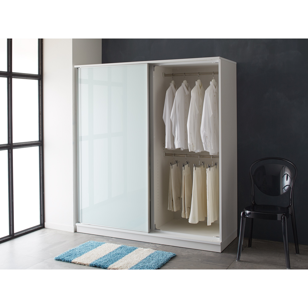 ヨーロッパでよく見る大型のスライドドア式クローゼットを日本で使いやすいサイズ感で。モダンなアルミ枠で大人のおしゃれワードローブに。引き戸で狭い部屋でも設置できるコンパクトさ。オプションと組み合わせて壁面をリフォーム。ガラス扉で艶やかな清潔感を感じます。ヨーロピアンなワードローブを叶えるイタリアモダンな木製の大型引き戸クローゼット■ヨーロッパの収納で見かける大型のスライドドア式ワードローブを、日本の住宅に合うサイズにしてご用意しました。■海外インテリアでよく見かける、スタイリッシュなアルミフレームのデザインを用い、モダンなスタイルに。大型で大量収納が可能なので、オフシーズンのアイテムもいつでも必要なお洋服を手に取ることができる衣替えいらずに。豊富なサイズ展開と多彩なオプションを組み合わせて、リフォームであつらえた作り付けの収納のような存在感■大量収納が叶う大きなスライドワードローブは幅を20cm刻みでご用意。お部屋の大きさやドア・窓の位置に合わせてちょうどよい大きさをお選びいただけます。■オプションで別売りの棚板やインナーチェスト、再度に合わせて設置するタワーチェストを完備。お手持ちの衣類の種類に合わせて、オーダーメイドのようにカスタマイズが可能です。■引き出したくさんの洋服タンス用にタワーチェスト、下着などの小分け収納用のインナーチェスト、たたんで仕舞うシャツ類のためには棚板をセッティングなど様々なご要望にお応えします。■基本のセットはシンプルな洋服を吊り下げるためのハンガーラックが付いたタイプ。ロングコートやワンピースをかける高さに余裕があるスペースと、ジャケットやスカートなどがかけられるスペースを設けています。スライドドア式のクローゼットは大容量収納と省スペースを同時に叶える便利な優れもの■前面の扉には滑らかに開閉する引き戸式を採用しました。■引き戸は開閉スペースを取らないため、大型の大量収納タイプでも狭い部屋に無理なく設置できます。■大きな引き戸で中身を整理整頓しやすく、衣類の管理もとても便利。■扉を閉じて中身をさっと隠せばあっという間に生活感を感じないすっきりとしたお部屋になります。■どうしても空間の限られる寝室や、リノベーションマンションのご自宅にもぴったり。■小さい家でウォークインクローゼットを設けたい際に、壁面いっぱいに壁面収納として設置してもお勧めです。艶やかな降格が美しいガラス扉で清潔感としゃれなスタイリッシュさを演出■前面の扉には光沢が美しいガラス張りの扉を採用。■すっきりとした印象と清潔感をお部屋にもたらします。■ガラスは本体色がホワイトの時はホワイトのガラスを、本体がダークブラウンの際にはブラック色のガラスでお届けします。■どちらのガラスの色も透け感はほとんどなく、中身をしっかりと隠してスマートに収納。日本の住宅に合わせやすい2カラーバリエーション■昨今の日本の内装に合わせて選びやすいカラーでご用意しました。■ホワイトは正面は光沢のあるクリアなホワイトカラー。拭き掃除も簡単な素材で清潔感を感じさせます。艶のある表面材なのでモダンでベーシックなお部屋やモノトーンインテリアにおすすめです。■ダークブラウンはまっすぐな木目はっきりしたシックなカラー。高級材のウォールナットに合わせた色合いと木目調が、重厚感と落ち着きを感じさせる印象。ホテルライクなインテリアやブルックリンスタイルなどにぴったり。安心と信頼の職人技が光る日本製・国産の衣類収納庫■熟練の家具職人がひとつずつ丁寧に仕上げたワンランク上の仕上がり。■ご注文をいただいてから1点ずつ生産します。■細部の丁寧な仕上がりなど日本製ならではの高品質なワードローブです。