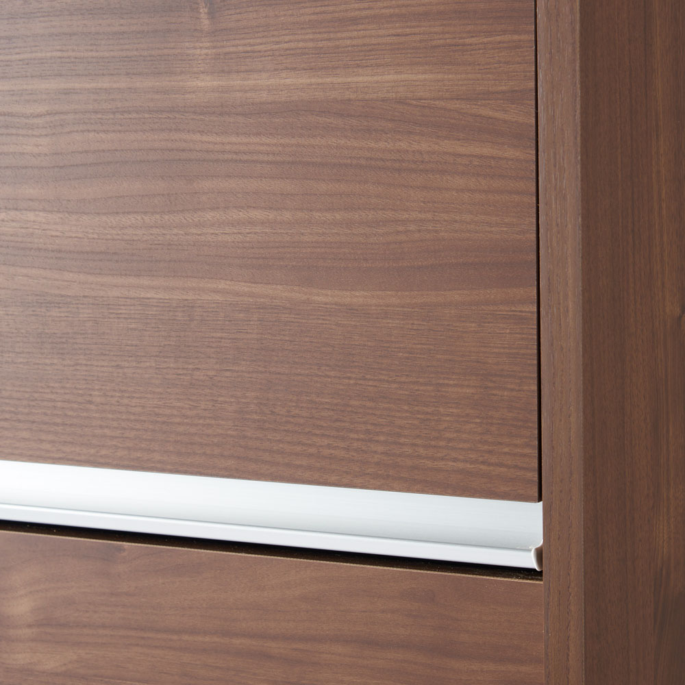 大型レンジも家電も簡単に扉で隠せるスタイリッシュキッチン収納シリーズ。アルミ製の取っ手や美しい前板などデザイン性にもこだわりました。ダストボックスが入るユニットが登場。大型レンジも家電も隠して美しくスタイリッシュ。ごちゃつきを簡単に扉で隠せるキッチン収納シリーズ。奥行があり大型電子レンジやスチームレンジも隠せます。キッチン家電や電子レンジを隠すと、お洒落な雰囲気に。シリーズの上置きは高さオーダー可能で作り付けのよう。細部までこだわり機能が満載の高機能シリーズです。大型レンジが隠せる扉付き。急な来客も安心■見せると隠す、相反する要素を兼ね備えたレンジ収納。■大きな家電も扉ですっぽり隠してすっきり。■家電を使用する際は扉を内部に収納。■開けたままにしておけるので調理もスムーズ。■どうしても散らかりがちなレンジ周りを目隠し。大型スチームレンジ対応。奥行内寸たっぷりで安心■スチームレンジは奥行が広く台に収まらないことも。■この家電ラックは天板部分の奥行が広い心強い家電台。■レンジラックでなくコーヒーメーカー・トースターも。■炊飯器・ホットプレート等のキッチン家電もぴったり。■狭い空間にキッチン家電をまとめて収納できます。ダストボックスも収まる大きな引出し付き◆下部に大きな物もおさまる深引出しを設置しました。■お手持ちのごみ箱や別売りダストボックスが収納可能。■キッチンごみ箱を隠すとより空間が片付いた印象に。開閉スムーズのフルスライドレール引出し■引出し全段にフルスライドレールを採用。■奥まで開閉スムーズで出し入れ楽々。■カトラリー・小皿などのキッチンアイテムも安心収納。■食品ストッカー・キッチンストッカーとして。水汚れに強い表面材を使用■前面には水汚れに強い強化紙を使用しています。■すっきりした圧迫感のないホワイトはキッチンの定番。■木目をリアルに再現したブラウンはシックな雰囲気。スムーズな家事のための細部のこだわり。■横に長く掴みやすい取っ手は忙しい家事を意識し設計。■引出し内部はクリーンなホワイト調で収納物に配慮。■扉に耐震ラッチを装備、揺れを感知し自動でロック。■収納物の飛び出し・滑り落ちを防ぎます。巾木カット付きで壁ぴったり設置できるアイデア収納■薄型収納でも壁との間に無駄なスペースがあると残念。■7.5×1.5cmの巾木カットで壁ぴったりに設置。安心と信頼の職人技が光る国産のキッチン収納熟練の家具職人がひとつずつ丁寧に仕上げたワンランク上のダイニングボード・食器棚です。細部の丁寧な仕上がりなど日本製の高品質なキッチンボード・カップボードをお楽しみください。