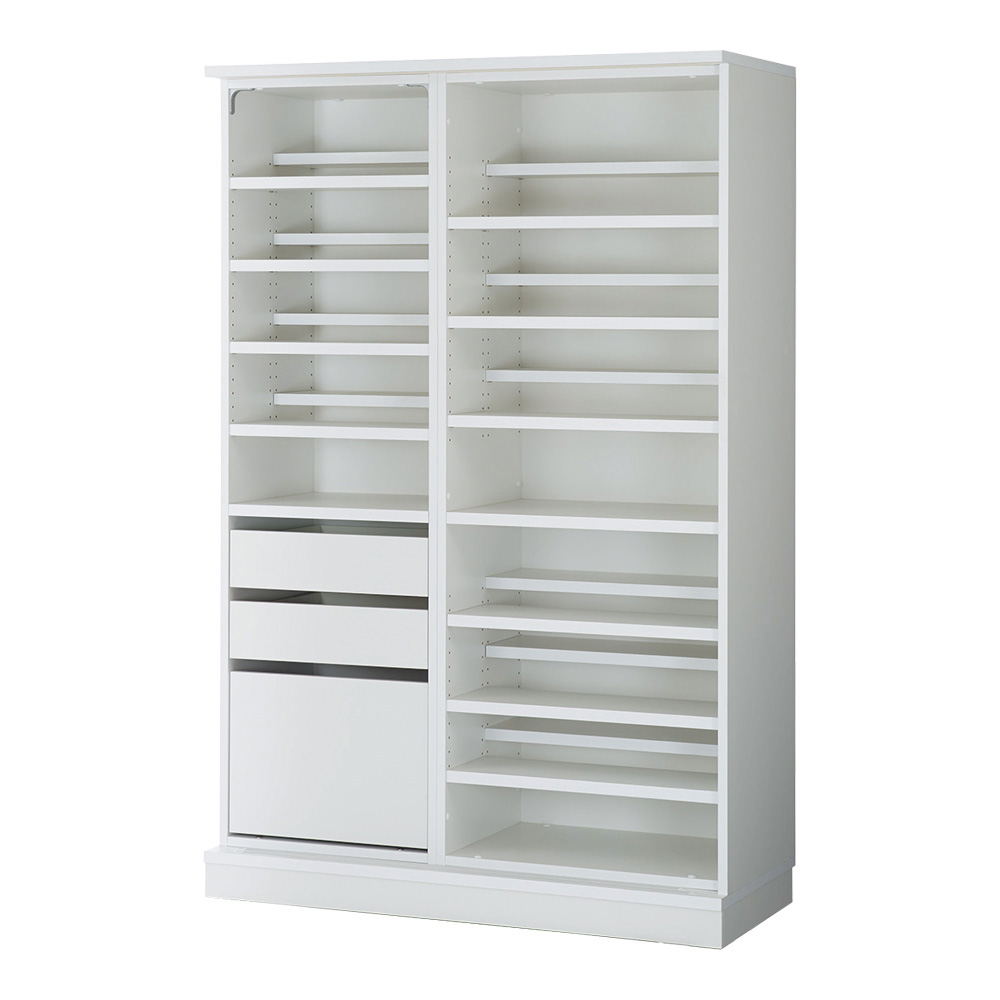 (ア)ホワイト 内部構造 引き出しの位置:向かって左 ※写真は幅117.6cmタイプです。 ※扉をはずして撮影しています。