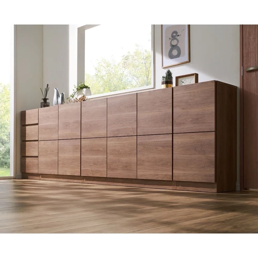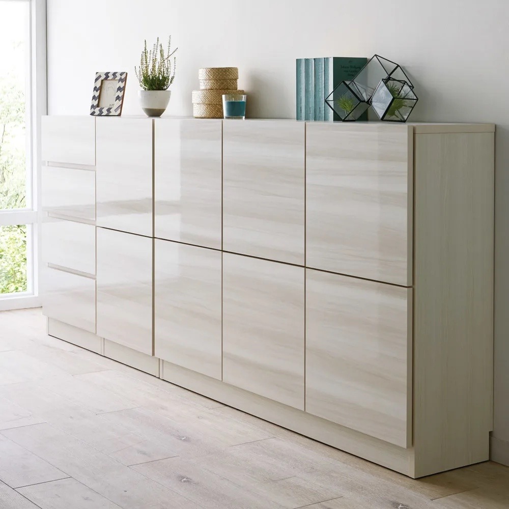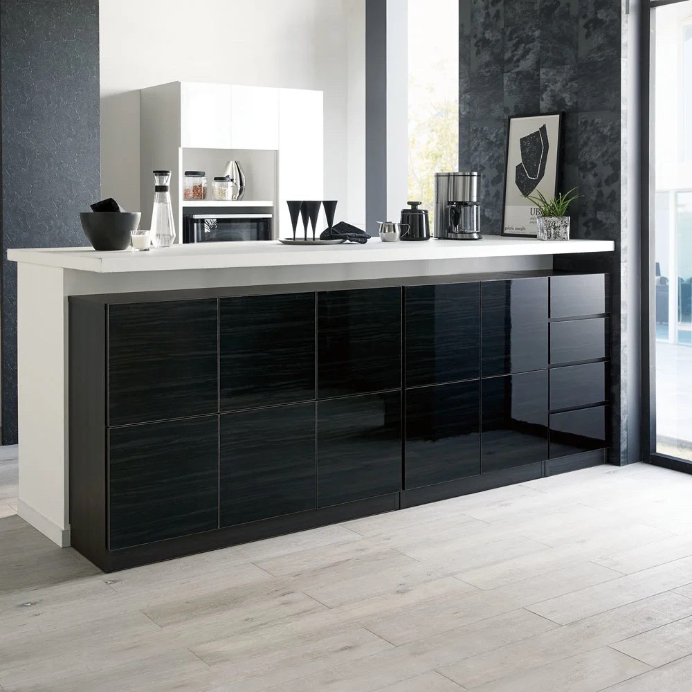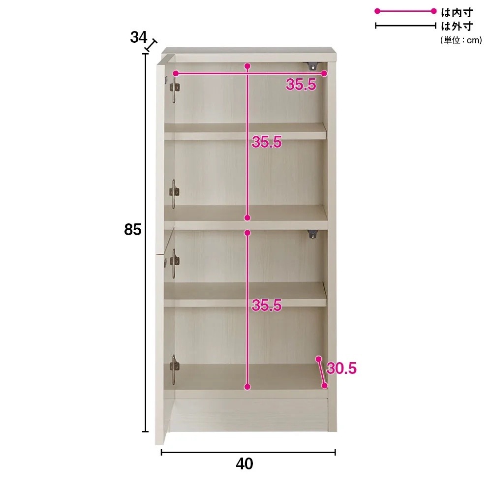 端正なスクエアデザインでお部屋に高級感を添えるカウンター下収納庫。整理整頓された空間を作り出す、正方形デザインの収納庫◆モダンな印象のスクエア扉がおしゃれなカウンター下収納です。◆リビングやダイニングの生活感を隠すことができます。◆薄型でコンパクトなのでベッドルームの本棚や玄関、廊下収納としてもおすすめです。使い勝手にこだわった機能性◆扉はプッシュオープン式で開け閉めスムーズ。◆(ア)(イ)前面は美しい光沢素材でお手入れも簡単です。(ウ)は摩擦に強く、傷が目立ちにくいため、美しい表情を長く保ちます。◆コンパクトな奥行でもたっぷりの収納力。◆収納棚は3cm間隔5段階で高さ調節可能。◆本や食器、食品ストックの収納にも便利です。選べる2サイズの奥行設計◆奥行29cmは薄型で狭い場所でも圧迫感を軽減。デッドスペースを収納として活用できます。◆奥行34cmはスリムなサイズと収納力を両立。キッチン収納やリビング収納におすすめです。シックで温かみのある3色の木目柄お部屋のインテリアに合わせてお選びいただける人気の3色をご用意しました。(ア)ホワイト 繊細な白い木目模様が、お部屋に美しく溶け込みます。(イ)ブラック シックでモダンな黒の輝きで、ワンランク上のおしゃれなリビングルームに。(ウ)ウォルナット 無垢のウォルナット材をリアルに表現した質感でどんなお部屋にも美しく調和します。