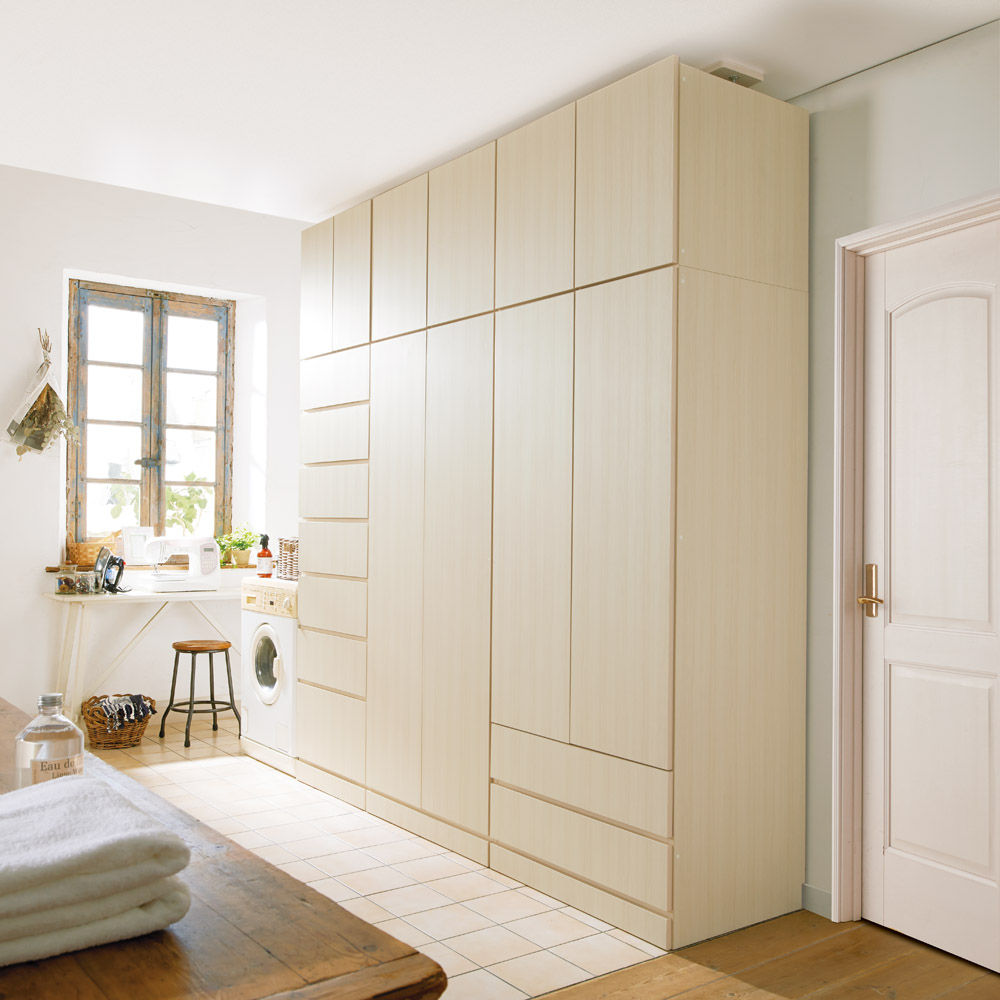 さまざまな部屋にマッチする自由自在のワードローブ。まるで備え付けのような上品で美しい定番ワードローブ。リビングや家事室、寝室などでも、たっぷりの収納力を発揮。突っ張り式の上置き使用で天井までギッシリ収納スペースに!【突っ張り対応天井高さ=238〜246cm】廻り縁があっても突っ張れる上置き仕様。さまざまな部屋にマッチする自由自在のワードローブシリーズの上置きです。まるで備え付けのような上品さと美しさ。リビングや家事室、寝室などでも、たっぷりの収納力を発揮。色はホワイト(木目調)、ナチュラル、ブラウンの3色からお選びいただけます。扉はプッシュラッチ式で、ホコリよけの防塵フラップ付き。可動棚板1枚付き。同シリーズのワードロ−ブやタワーチェストなどと組み合わせてご使用ください。天井高238〜246cmに対応します。同シリーズ商品との設置の際に便利な連結機能(連結ボルト)を備えております。同シリーズ本体と組み合わせることで収納力を強化することができます。水拭き可能です。
