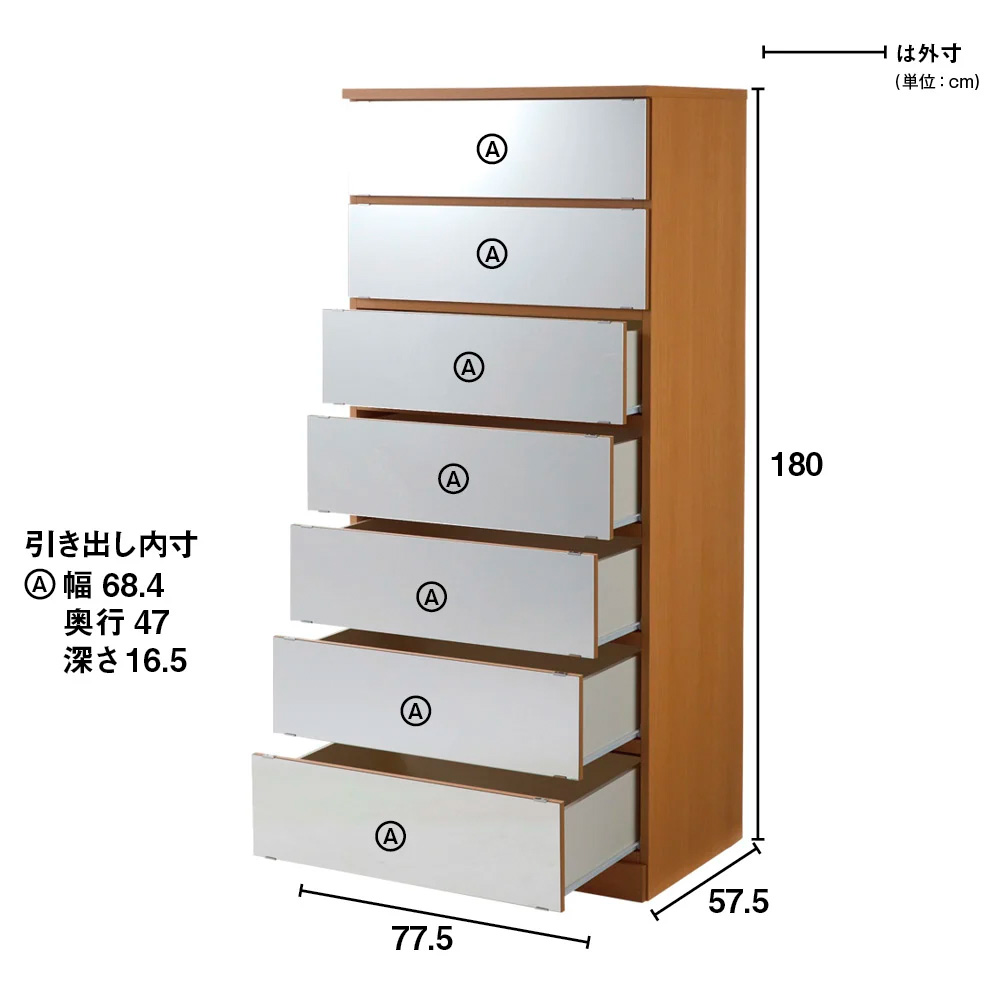 輝くミラーで憧れのクローゼットルームを演出する総ミラー貼りのワードローブ。開閉スペースをとらない引き戸仕様なので、他の家具との距離感などレイアウトの自由度がよりアップ。別売りの上置きを組み合わせて壁一面が収納スペースに。毎日のコーディネートを、こころゆくまで楽しめる◆ウォークインクローゼット並みの収納も可能。衣替えの手間いらずで、お気に入りの服を通年スタンバイしておけます。◆前面ミラータイプは、映り込み効果により、お部屋が明るく、広く感じます。◆板扉タイプは前面に丈夫なオレフィンシートを採用。光沢感たっぷりのホワイトです。◆美しさと収納力を兼ね備え、見た目は、まるで造り付け(オーダー)家具の様な印象です。◆上置き(別売り)と組み合わせれば、壁一面が優雅な収納スペースに生まれ変わります。リノベーションしない収納計画にも、リノベーションしたお部屋にも◆大容量の衣類収納を叶えるワードローブシリーズ。ハンガーや棚、チェストを備えた充実機能で、お手持ちの衣類をすっきりまとめることができます。リノベーションよりもぐっと低予算で、衣類収納をより使いやすく、美しくバージョンアップできます。◆リノベーションして広くなったお部屋にもおすすめ!天井までの壁一面を生かして大きな収納空間を作れるので、お部屋がいつも片づいた状態を保てます。前面ミラータイプなら、リノベーションできれいになったお部屋が映り込み、より広く感じさせてくれる効果もあります。【製品情報】[色の種類]◆落ち着いたモダンな印象のダークブラウン。◆明るく清潔感のあるホワイト。◆お部屋に溶け込む優しいメイプルナチュラル。[サイズ・バリエーション]◆奥行は引き戸式の3タイプ、チェストタイプ全て58cmの共通サイズ。◆引き戸式3タイプの幅は88cmと118cm、さらに超ワイドの148cmまで3サイズをご用意。◆タイプは、ワイシャツやブラウス、バッグなどアレコレしまえる棚タイプと、ジャケットなどの上着やスカートなどがたっぷりしまえるハンガータイプ、さらにその両方を兼ね備えた充実のハンガー棚タイプをご用意。◆スライドレール仕様の引き出しが3杯付いています。◆扉の枠にはアルミを使用し、美しくスタイリッシュな印象をさらに高めます。◆チェストタイプは幅57.5cmと77.5cmの2サイズをご用意。◆引き出しは全部で7杯付いています。◆上置き(別売り)は天井高さ208〜272cmの範囲で1cm単位でのオーダーが可能。◆幅57.5cmはプッシュ扉タイプになります。[機能・構造・仕様]◆可動棚板は収納物に合わせて3cmピッチで可動できます。◆本体には転倒防止バンド付きで、安全性にも配慮。◆上置き(別売り)は、天井突っ張り式で、安定度の高い仕様。