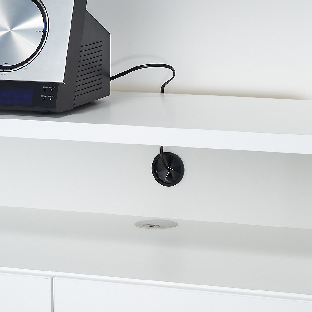 オープン棚配線穴。オープン棚の配線は後部を通して外部電源へ。