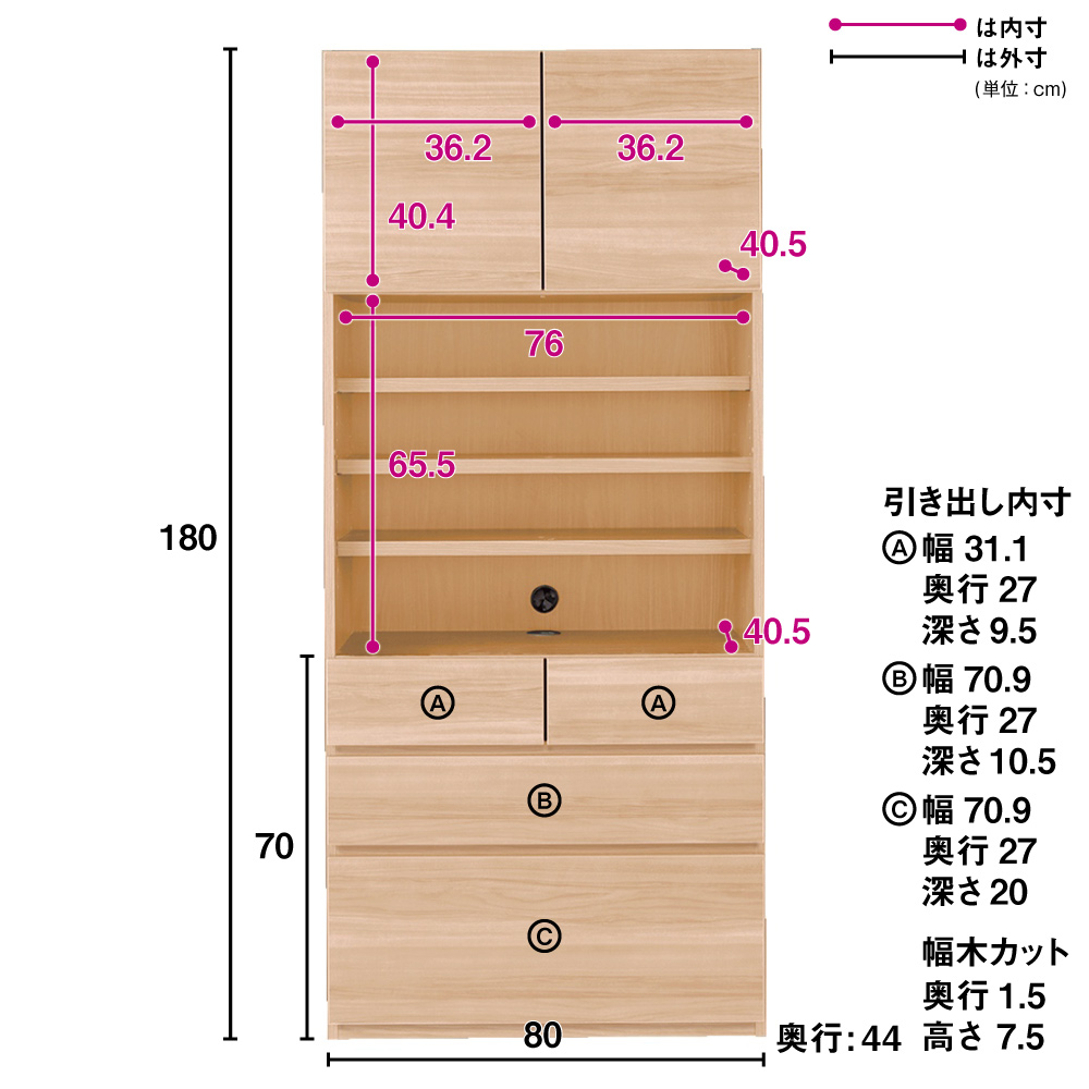雑多な生活用品をキレイに隠してたっぷりしまえるシステム壁面収納。ライフスタイルに合わせて豊富なラインナップから組み合わせができます。別売りの高さオーダー突っ張り式上置きをジョイントすれば天井ぴったりの収納空間が実現します。前板の色見本は無料です。機能満載!様々なスペースに設置することを考えたシステム壁面収納家具が登場!●シリーズのテレビ台の種類は幅、奥行、テレビ設置高さ、デッキ類収納数、カラーで選べる24種類。●本体同士をつなげる側面の配線穴にコードを横に通せば壁際をはわせていたコードをすっきり隠せます。●配線に配慮した家具シリーズなので、テレビ、パソコン、オーディオ、AV機器類周りの壁面収納にピッタリ。●しかも奥行44cmの大容量収納タイプなので壁面いっぱいを収納スペースとして有効活用できます。●同シリーズのオーダー対応上置きと組み合わせれば、天井までのスペースいっぱいを収納棚としてご利用いただけます。●カラーは、ア)光沢感のあるホワイト イ)木目のやわらかい印象が特徴のナチュラル ウ)高級感あるウォルナット調のダークブラウン の3種類。●壁紙に合わせても、他の家具類や扉、窓枠、床色に合わせてもOK!
