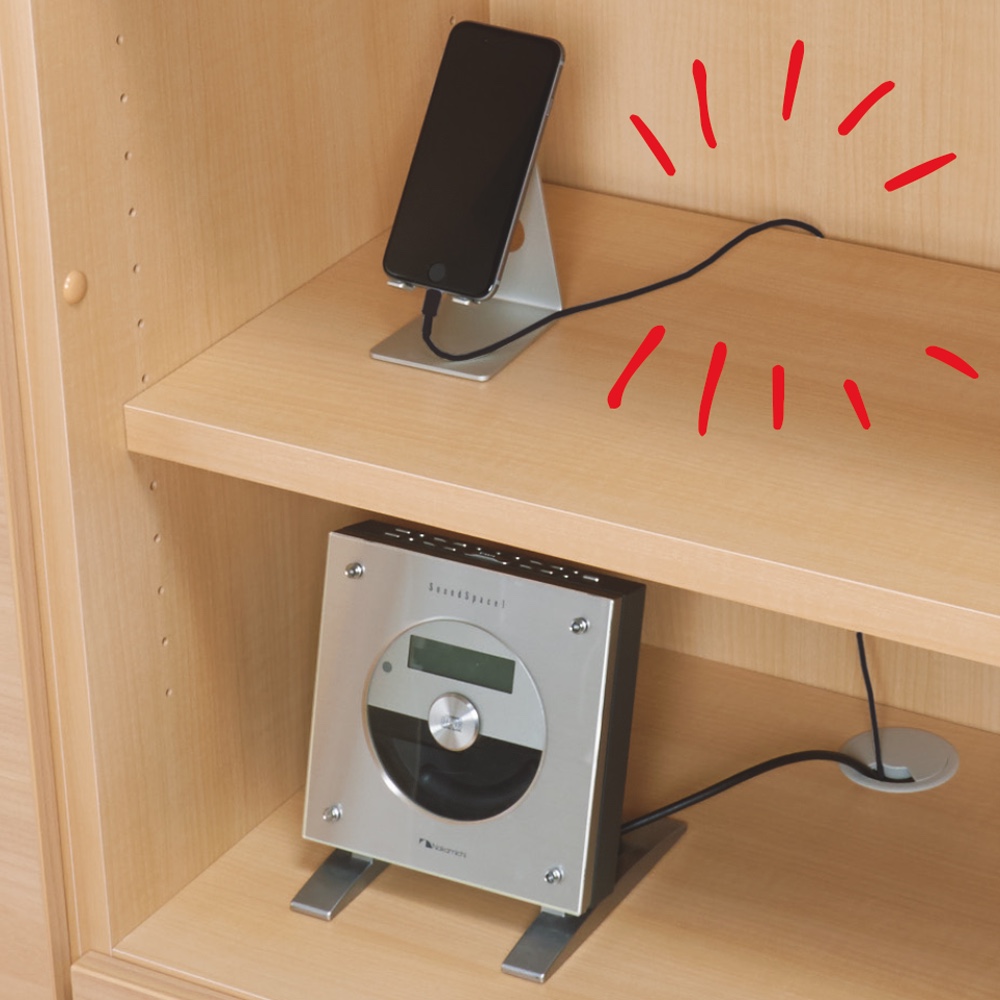 配線は側面コード穴から内部を通せるので、設置後のセッティングや並び変えも簡単・手軽に行えます。幅木カットで壁にピッタリ設置もできます。