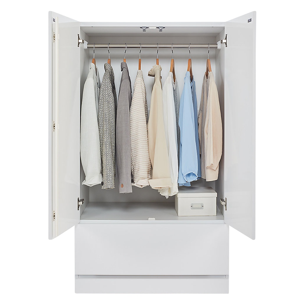梁にぴったり、まるで備え付けのよう!これぞ壁面収納ワードローブの決定版!お部屋の複雑な天井構造にもしっかり対応してくれる一押しの機能派商品!天井の大きい梁、重なり合う梁、いろいろな梁下など、その構造で壁面収納を諦めざるを得なかった、そんな悩みを一気に解決する商品です。サイズやタイプの違う40種類から自由な組み合わせが可能なしたい衣類収納空間を実現する一押しの壁面収納ワードローブシリーズ!商品のポイントは3つあります(1)本体高さ140cmと180cmの2タイプあることにより対応する天井または梁下高さが168〜272cmとなり、対応範囲がとても広くなっております。(2)幅30cm、40cmの幅の狭い本体、上置きをご用意することで、縦方向の大きな梁下でも突っ張れるように考慮しております。(3)上置きの突っ張り板を隠して見た目をスッキリさせながら、(本体よりも)奥行の浅い梁下でも突っ張れるように、突っ張り板の奥行も浅くしつつ、後方に位置させております。上記のポイントから、大きな梁、高さはあるけど奥行は浅い梁、縦方向の大きな梁といった様々なタイプの梁下でも設置できるようになっている優れもの商品です。1.シリーズバリエーション40種類以上●幅は30cm、40cm、60cm、80cmの4サイズから。●奥行は56cmで全シリーズ共通です。●本体商品の高さは140cmと180cmの2タイプとなっております。●型タイプはハンガータイプ (※140cmはハンガーバー1本、高さ180cmはハンガーバー2本)ハンガー&引き出しタイプ棚タイプタワーチェストタイプからお選びいただけます。●商品カラーは清潔感のある優しい艶色のホワイト、自然の温もりを感じる横木目調のナチュラル、上質空間を演出する大人な横木目調のダークブラウンの3色からお選びいただけます。2.うれしい機能が充実な、こだわりの設計構造!●扉はプッシュ式扉になっているので、手で押すだけでスムーズに開閉できる仕様になっております。●引き出しが付いている商品はスライドレール仕様となっており、開け閉めがとてもラクラクです。●上置き商品は突っ張り式なので、商品と天井をしっかり支えることができとても安心です。●本体は床と接する部分の板を厚めにしており、床からのほこり侵入を開閉時も抑えることができます。●最下段の引き出しは、ラグなどを手前に敷いていても引っかからずにスムーズに開閉できます。●本体は幅木対応(1.5cm×7.5cm)となっておりますので、壁にピッタリの設置が出来ます。●転倒防止バンドもついておりますので、上置き購入がなく本体のみても安心してお使いいただけます。●こだわりのシートをぜいたくに使用しており、高級感のある商品に仕上がっております。●ホワイトは優しい艶感のある清潔感溢れる汚れに強いエクセルイーゴスシートを使用。●ナチュラルとダークブラウンには横木目が美しく映え、摩擦や傷にも強いオレフィンシートを使用しております。●飽きの来ないシンプルを追求した洗練デザインなので、どんなお部屋にもマッチし、末永くお使いいただけます。3.商品補足説明●本体幅30cmと幅40cmの扉タイプ商品のご購入を検討されている方は、扉の右開き、左開きを選択してご購入していただけます。(※タワーチェストタイプは除く)●もちろん梁のない壁面の天井でもばっちり設置可能ですので、マンションでも一戸建てにお住まいのお客様でもご使用いただけます。●上置きご希望の方は、本体の幅サイズに合わせて、高さ26〜90cmでオーダーできます。本体との組み合わせで天井【梁下】対応は168cm〜272cmとなります。