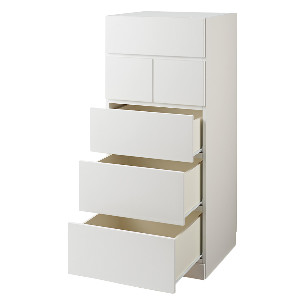 スライドレール 引き出しは全段ストッパー付きのスライドレール仕様でラクラク開閉。